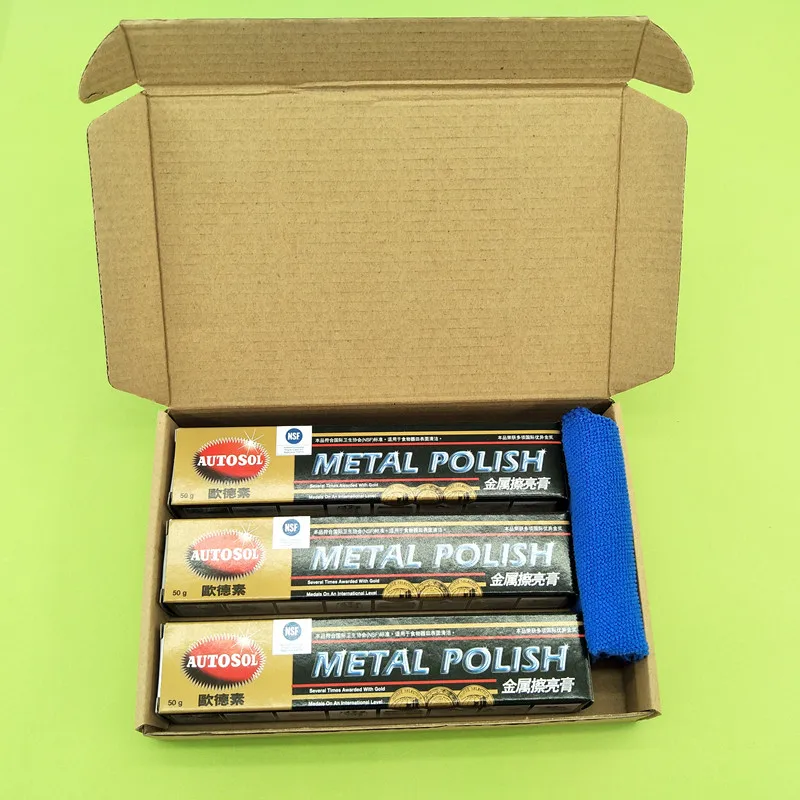 Металлический польский крем обеспечивает Ослепительный Блеск и Всепогодный эффект в течение длительного времени;Применение метод:Это необходимо для очистки поверхности металла выдавливанием пасты на мягкой ткани для удаления остатков крема и очистки поверхности металла. Через 1 минуту, черная пудра будет потерта, а затем протрите.