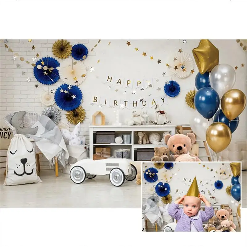 Laeacco золотые бриллианты синие изголовье стены День Рождения Вече...