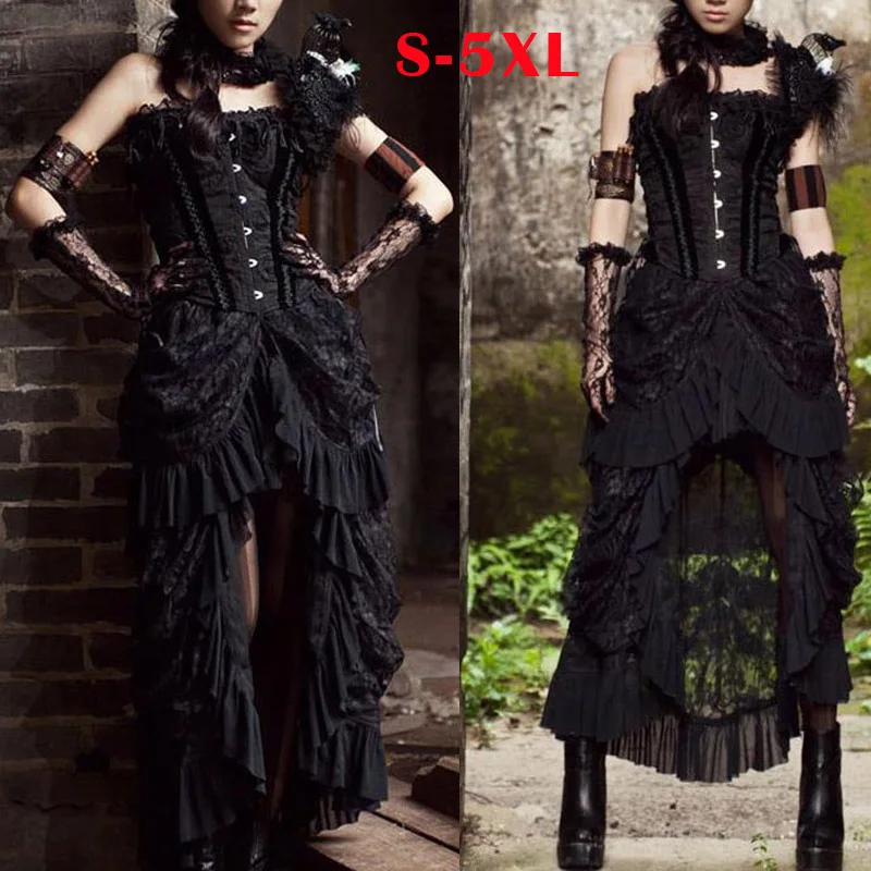 Юбка Wechery Женская длинная Плиссированная, пикантная винтажная эластичная черная, в стиле стимпанк, с цветочным кружевом, в готическом стиле, средней длины, на Хэллоуин