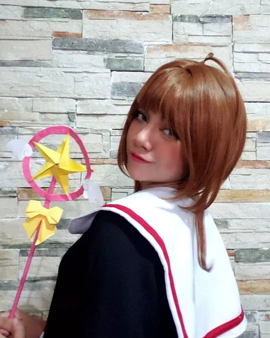 Парики для косплея парик КИНОМОТО сакуры из аниме похитители карт, искусственные волосы и повязка на голову для костюма на Хэллоуин с красными шариками