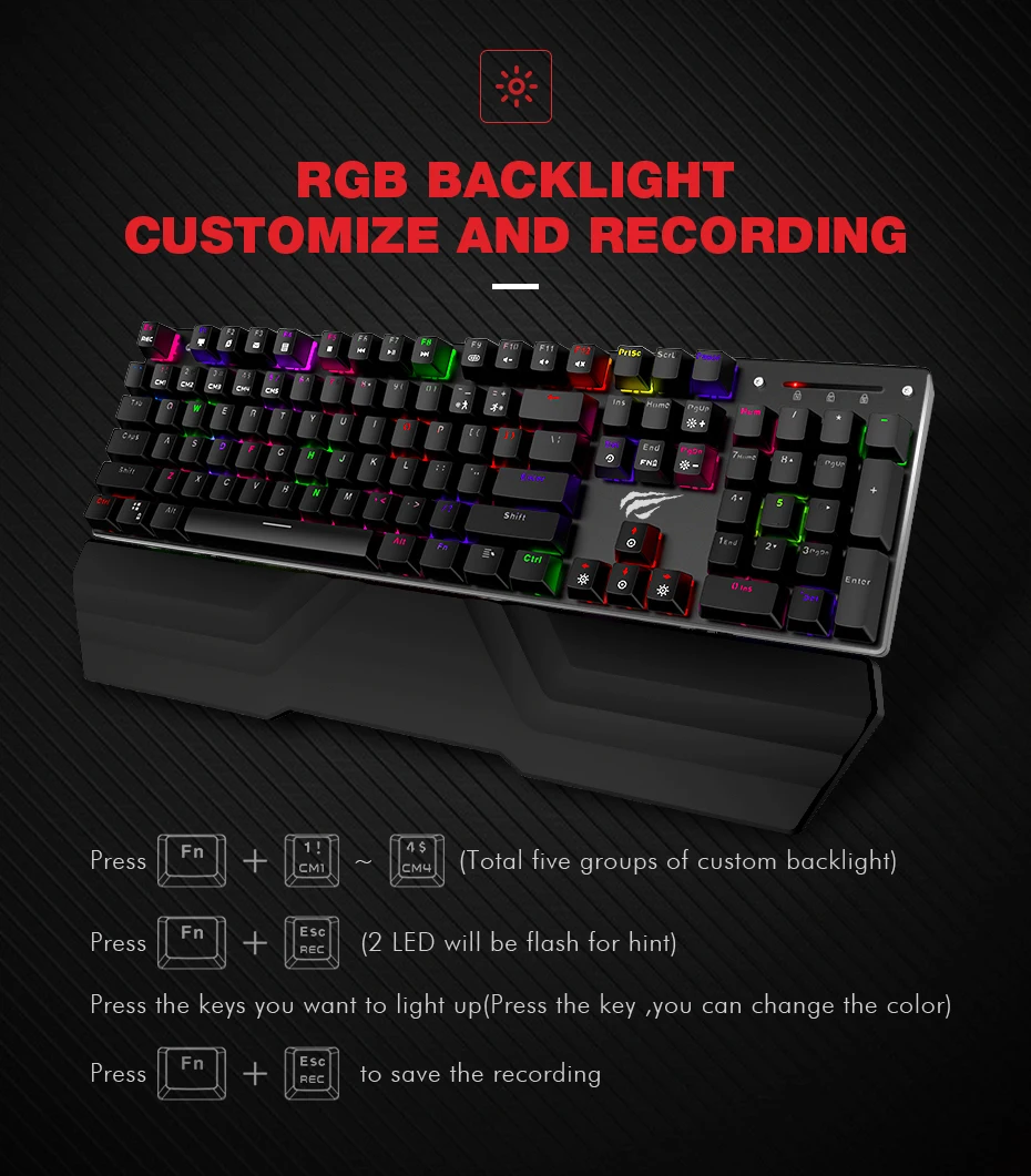 Механическая Проводная клавиатура HAVIT, RGB-подсветка, 104 клавиши, красный переключатель, русская версия, для ПК, геймера, настольного компьютера, планшета
