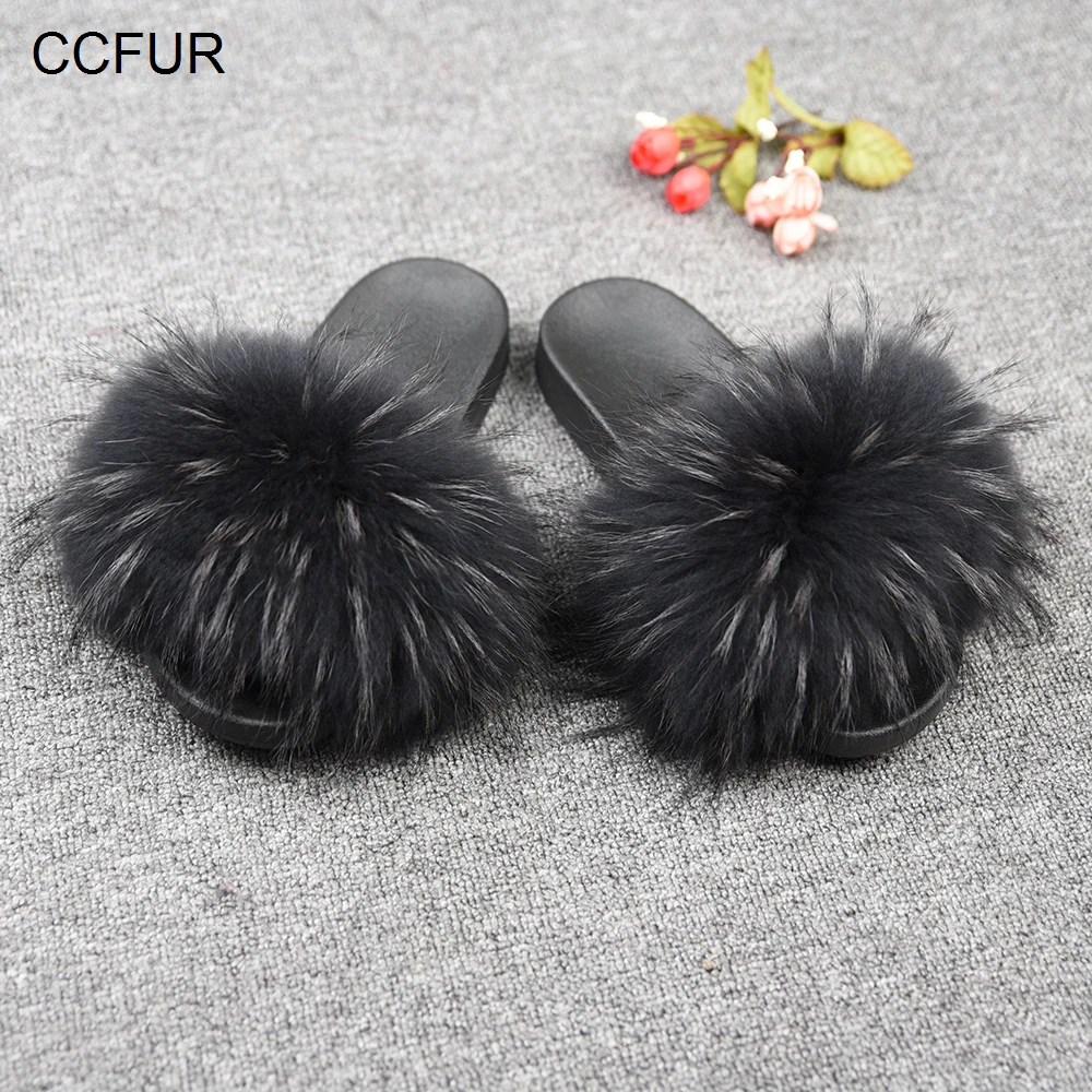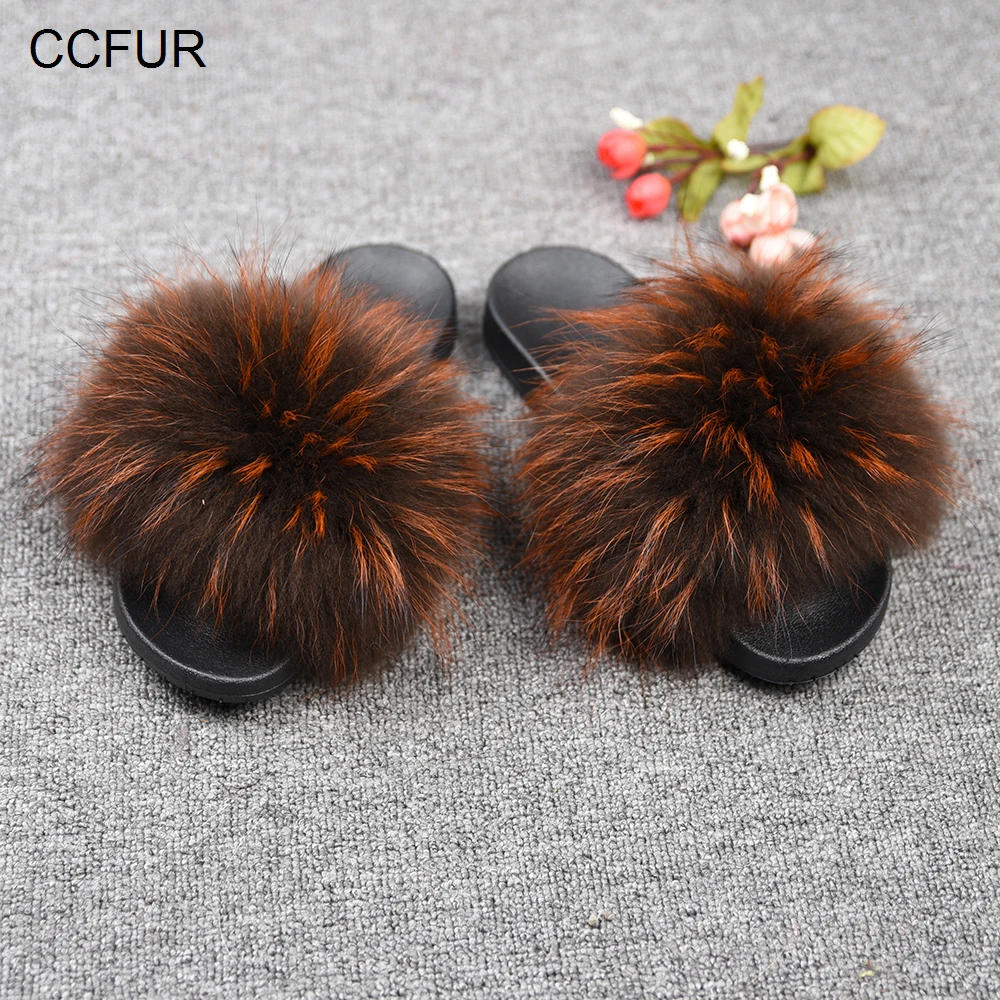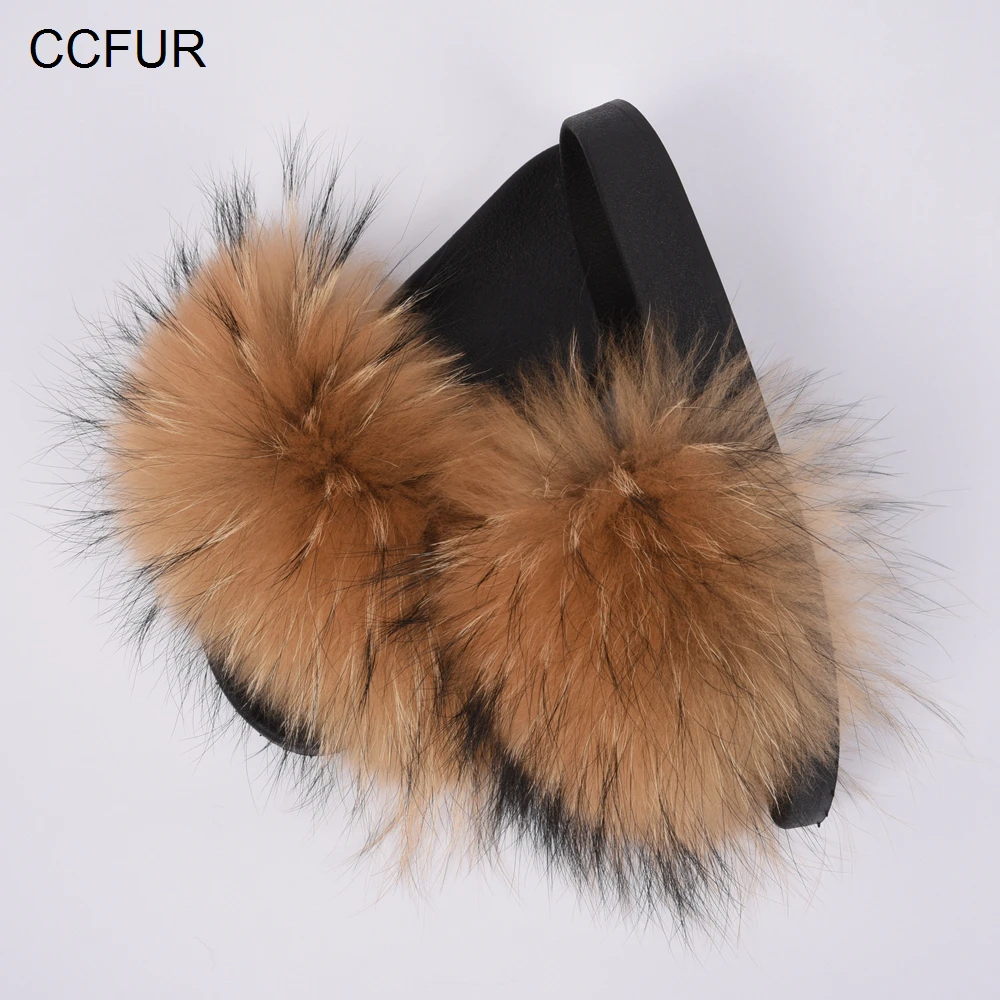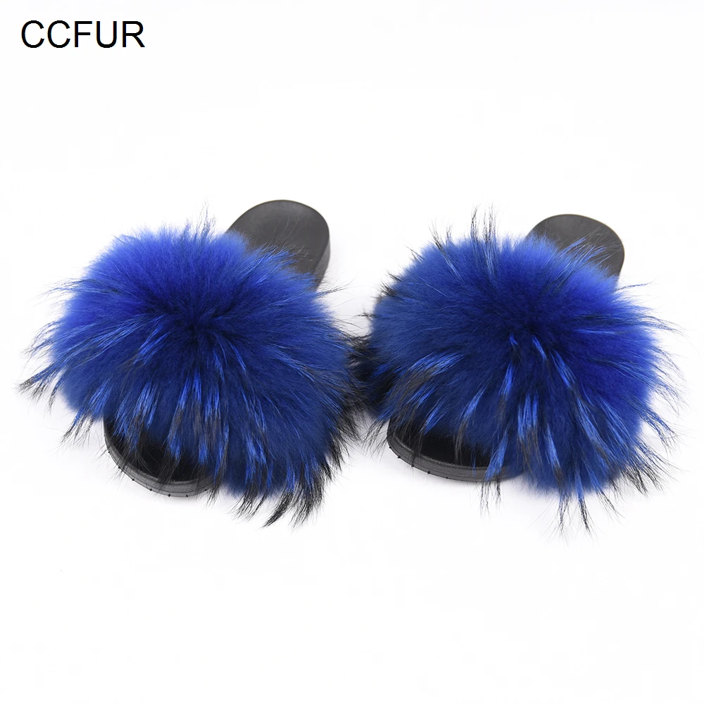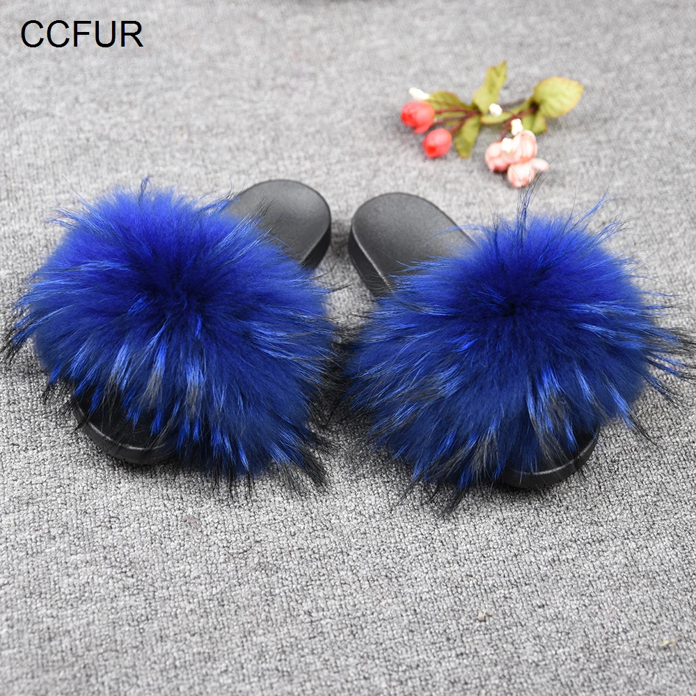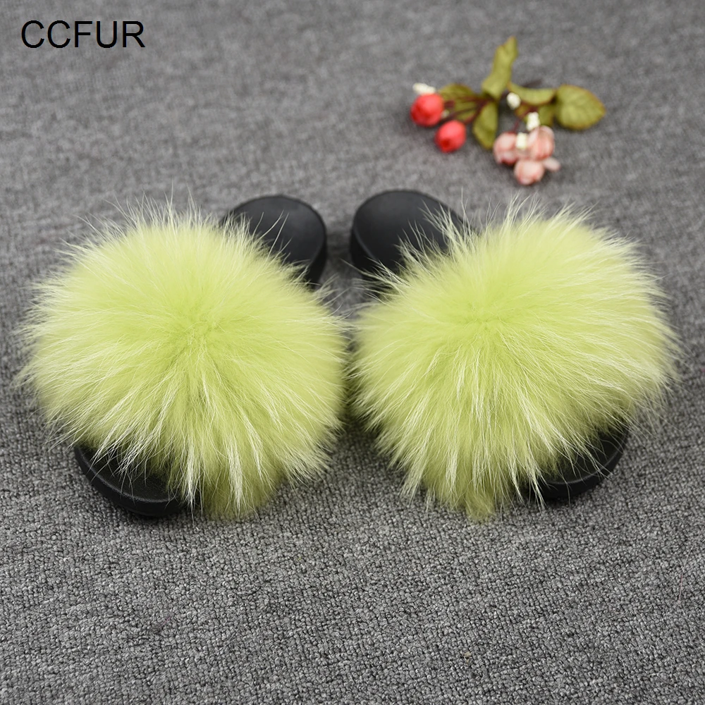 Женские меховые тапочки из натурального меха енота модные стильные меховые сланцы мягкие теплые большие пушистые Меховые Туфли S6020E