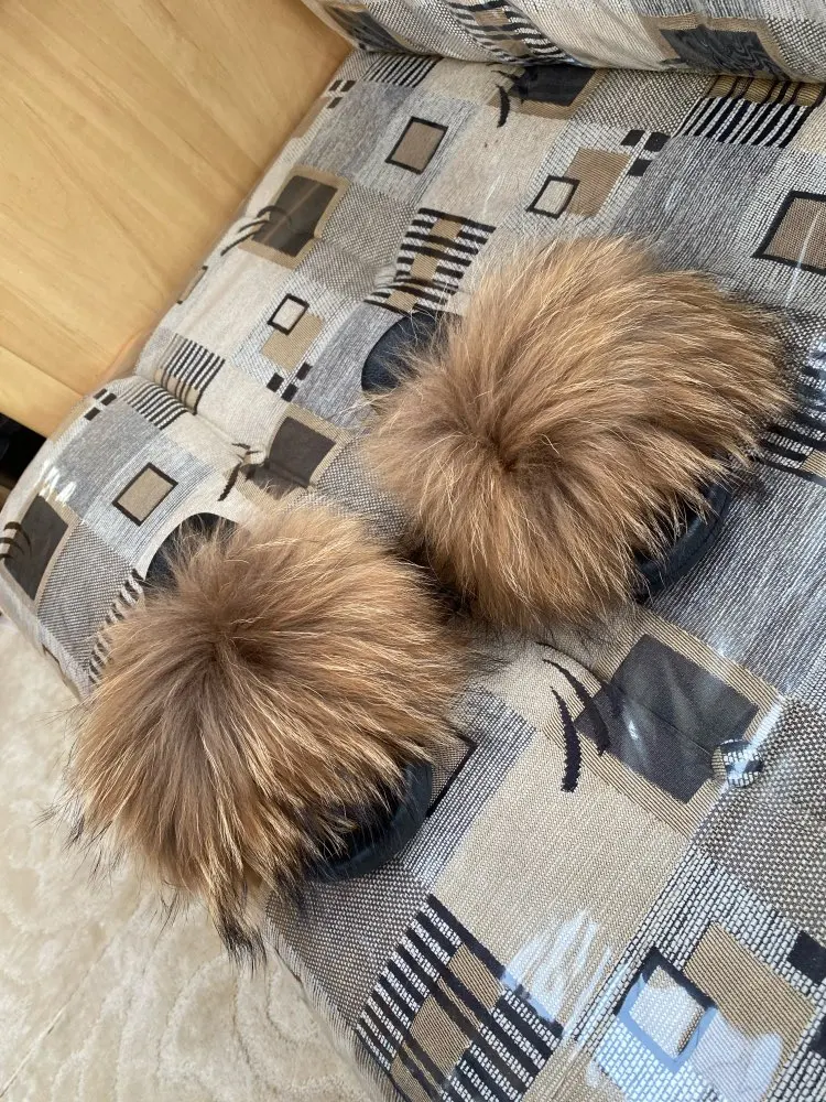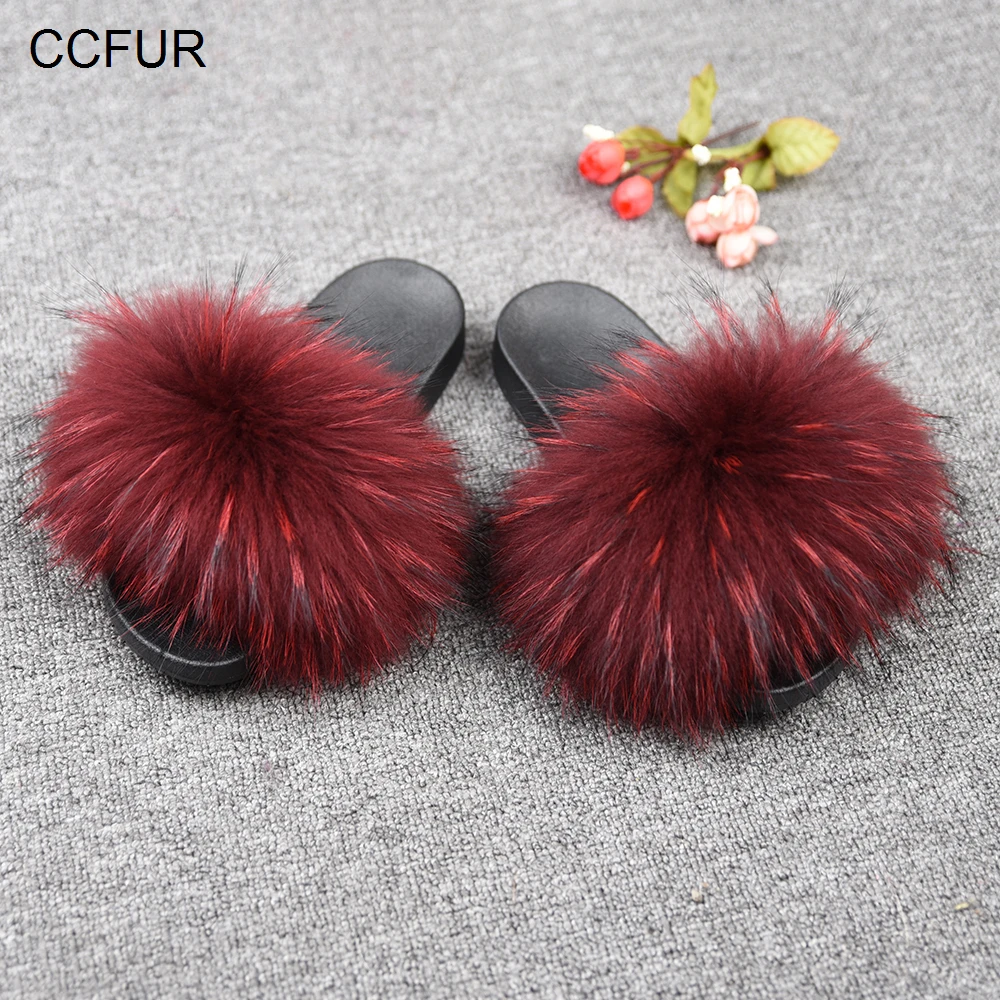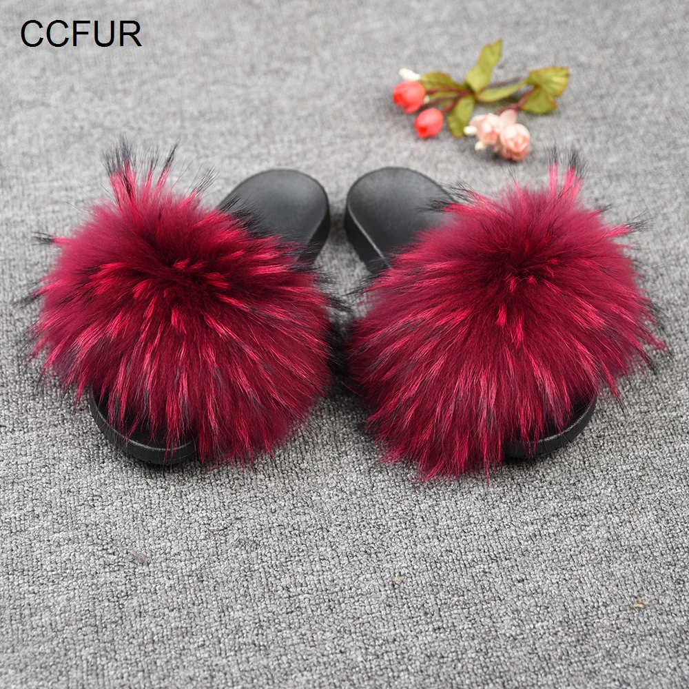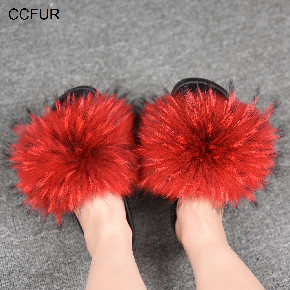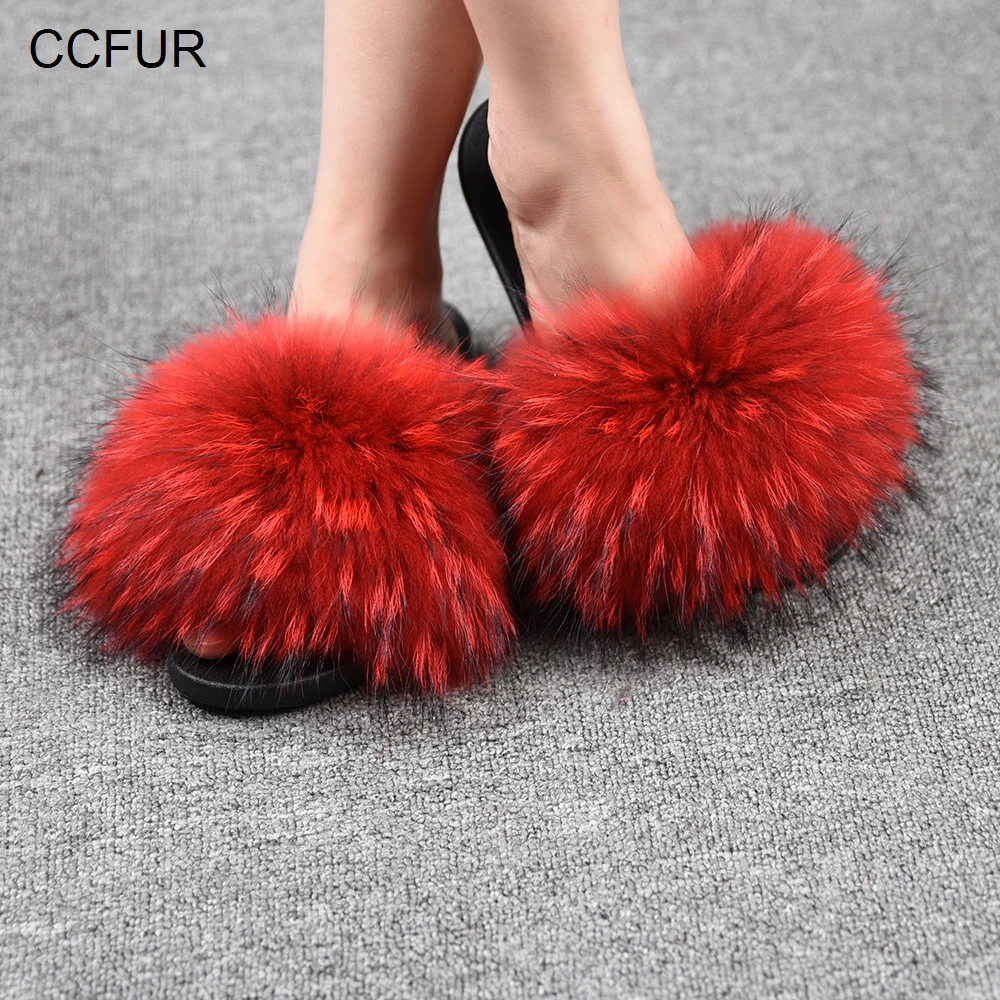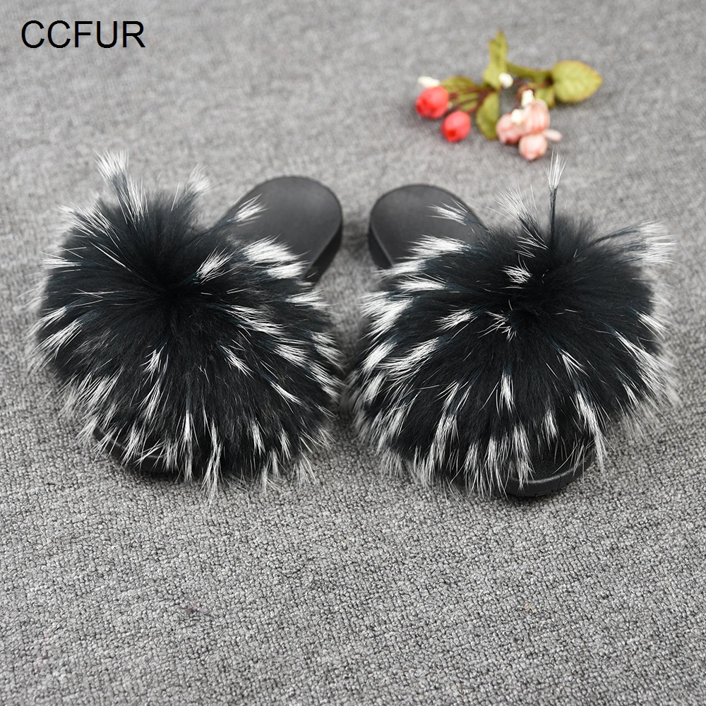 Женские меховые тапочки из натурального меха енота модные стильные меховые сланцы мягкие теплые большие пушистые Меховые Туфли S6020E