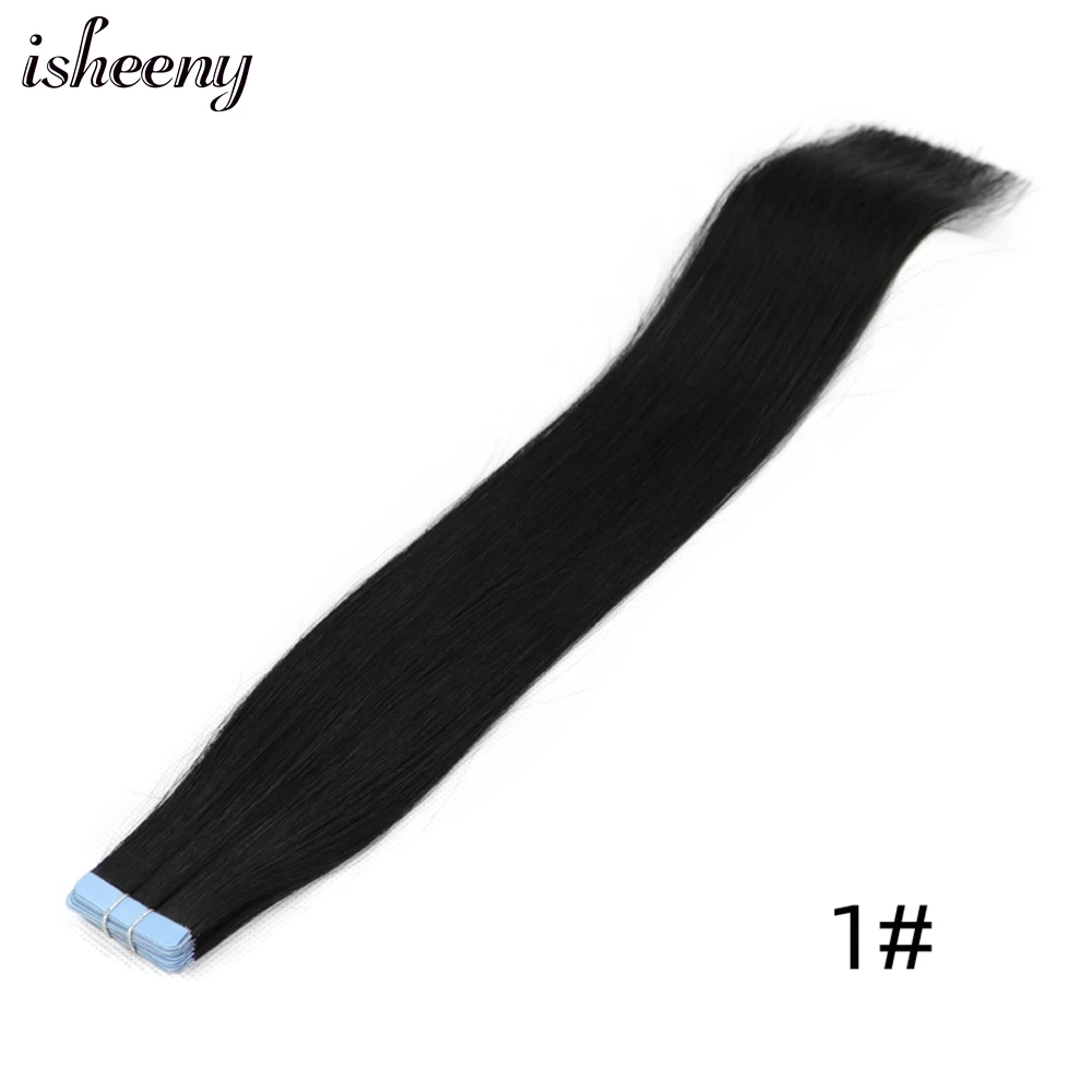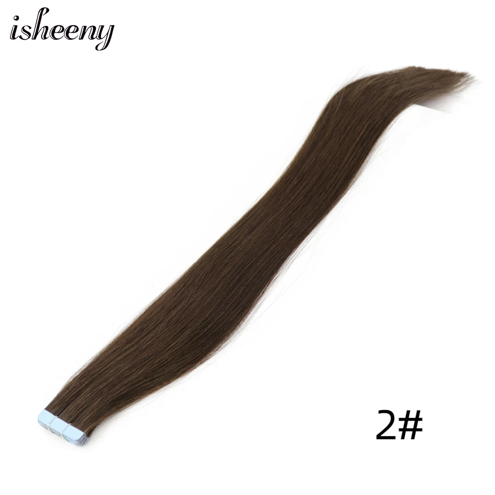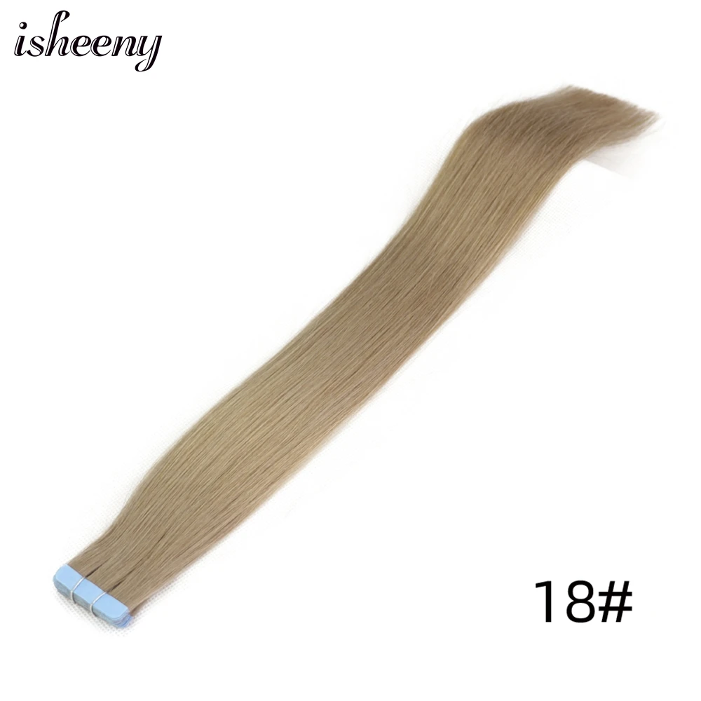 Isheeny человеческих волос ленты расширения прямой 14 "-24" уток кожи бесшовных волос образцы для салона волос тестирования