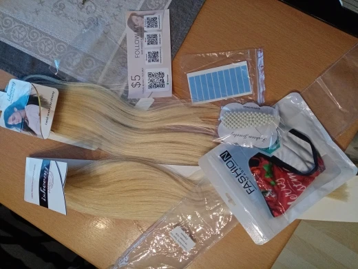 Супер быстрая доставка! Волосы хорошие, но ленты не липкие, моему мастеру нужно поменять.