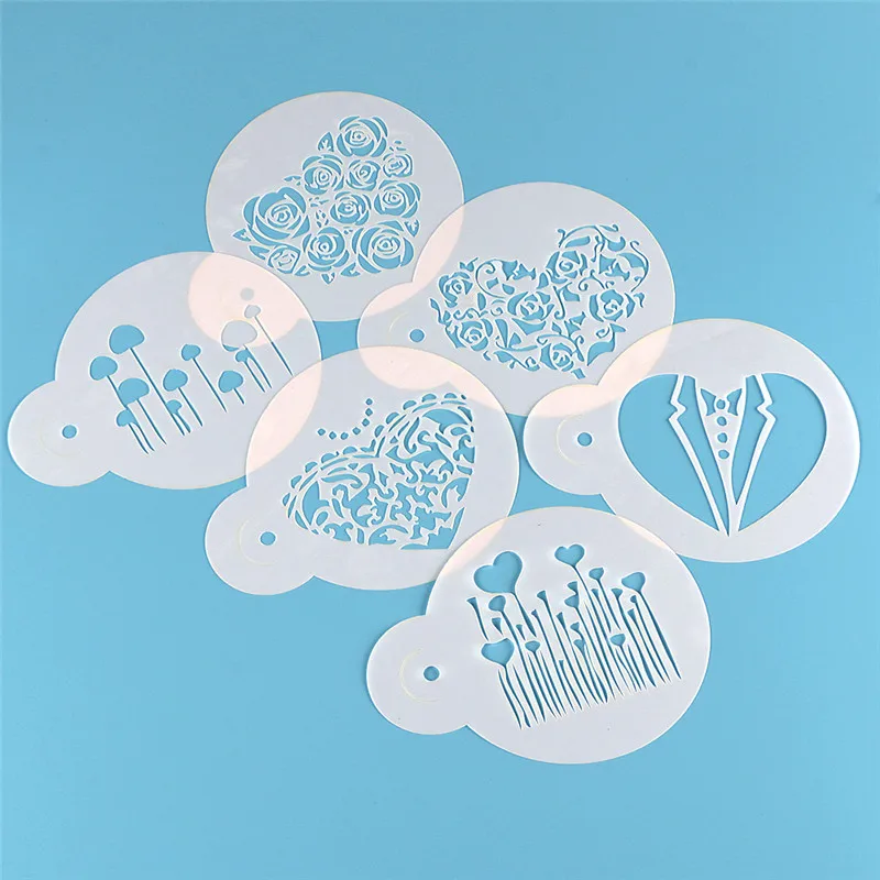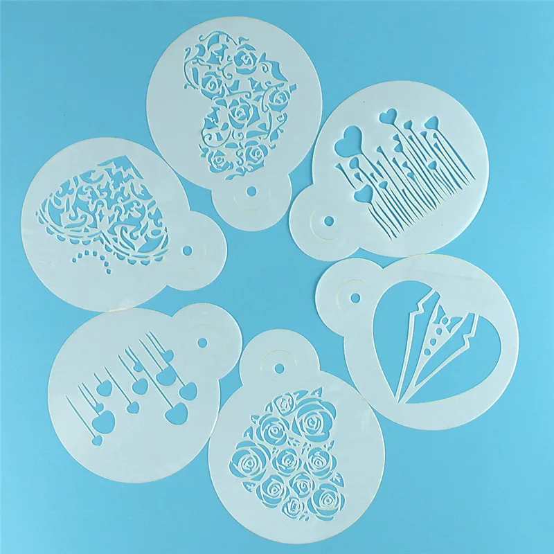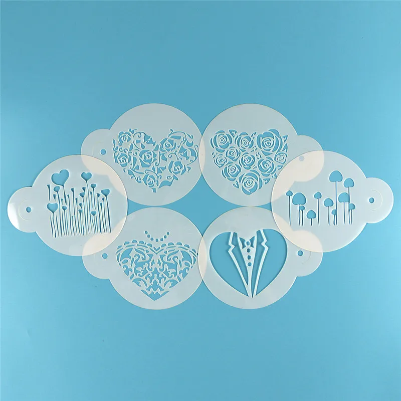 Aomily 6 шт.компл. День Святого Валентина DIY трафареты для торта Аэрограф художественные формы для рисования помадки инструменты для украшения кофе эспрессо трафареты