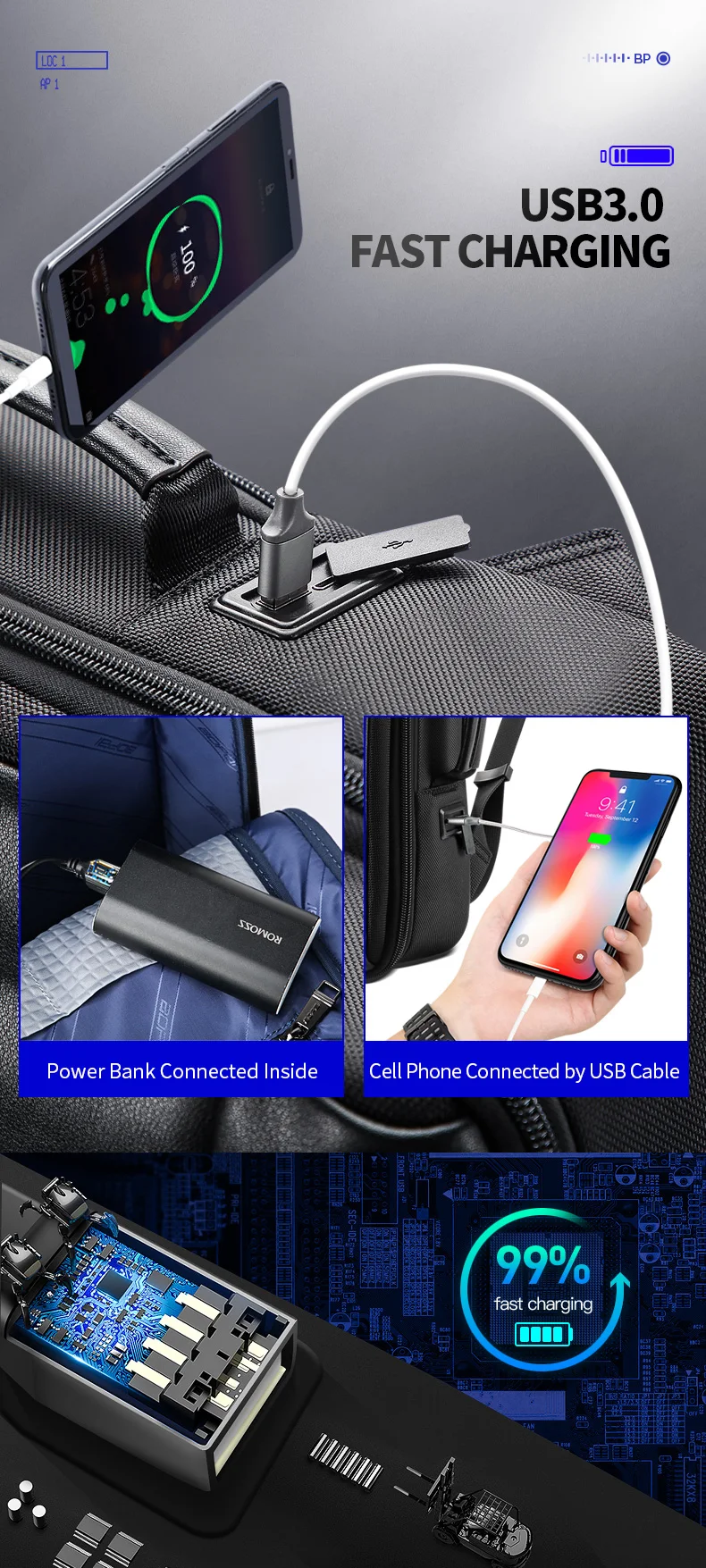 Backbag CharacteristicUSB Charging. anti-theft