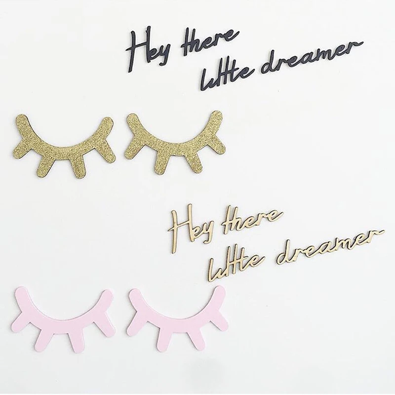 Настенные наклейки, блестящие зеркальные блестки в скандинавском стиле, деревянные 3D ресницы с закрытым глазом, настенные украшения, украшение для детской комнаты, домашний декор