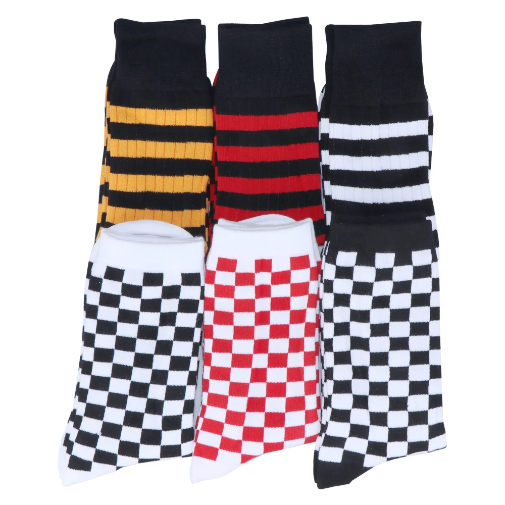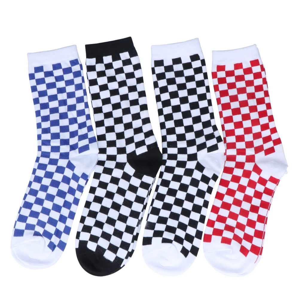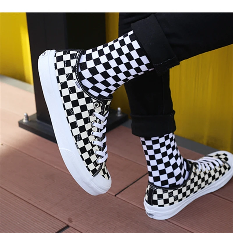 Носки мужские клетчатые в Корейском стиле Харадзюку, полосатые, квадратные, черные, белые, модные, цветные в клетку, с платьем