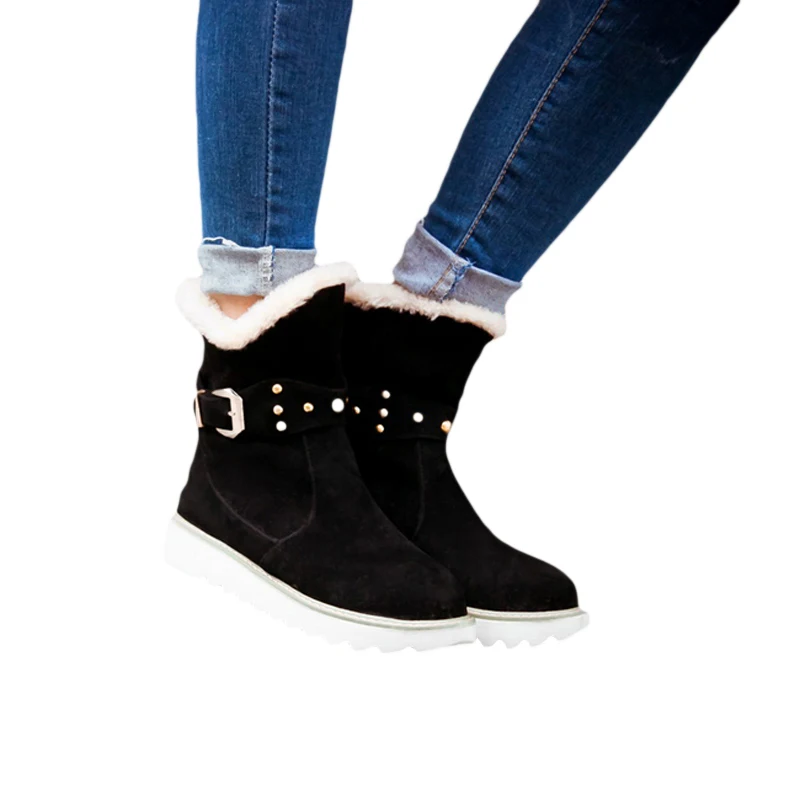 Классические женские зимние ботинки; замшевые ботильоны; теплые женские ботинки на меху с плюшевой стелькой; высокое качество; Botas Mujer; обувь на платформе без застежки
