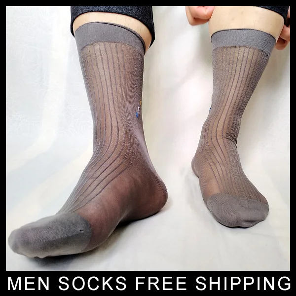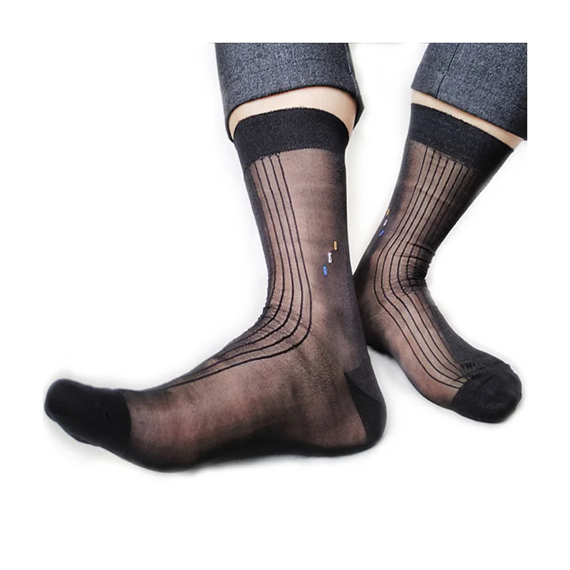 Носки мужские деловые, нейлоновые мягкие шелковые полосатые, пикантные удобные прозрачные Формальные, для фетиша, из коллекции