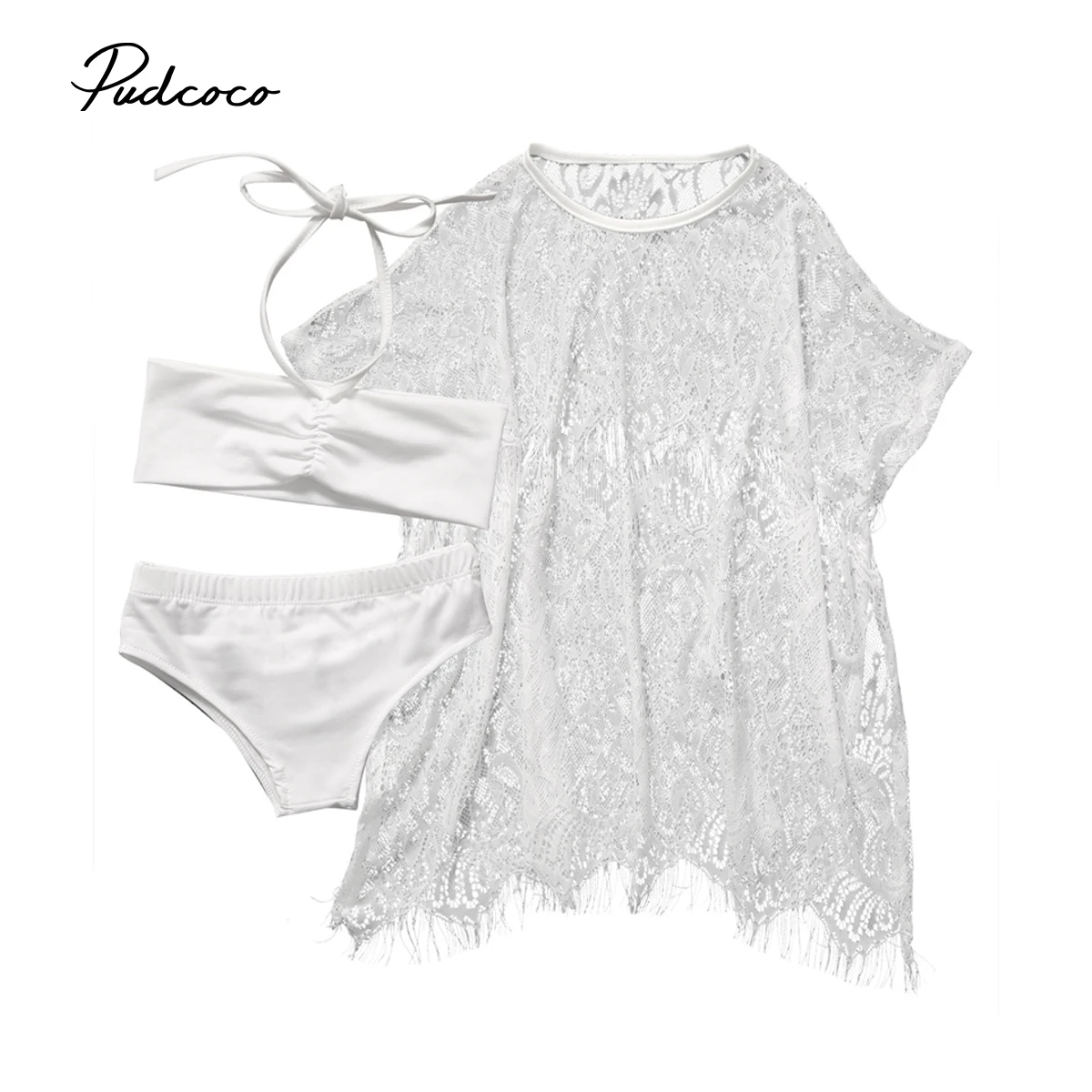 Комплект для девочек, 3 шт., летний кружевной пляжный костюм, компл...