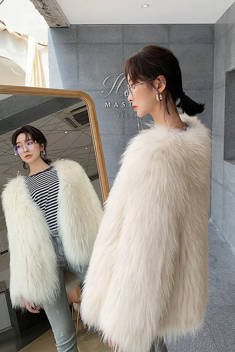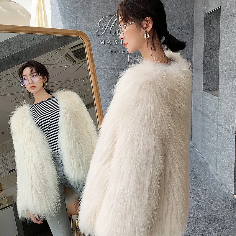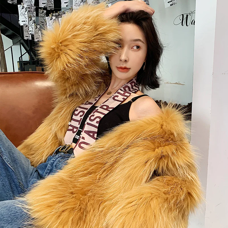 Пальто из натурального меха енота, длинное, вязаное, винтажное, 100%