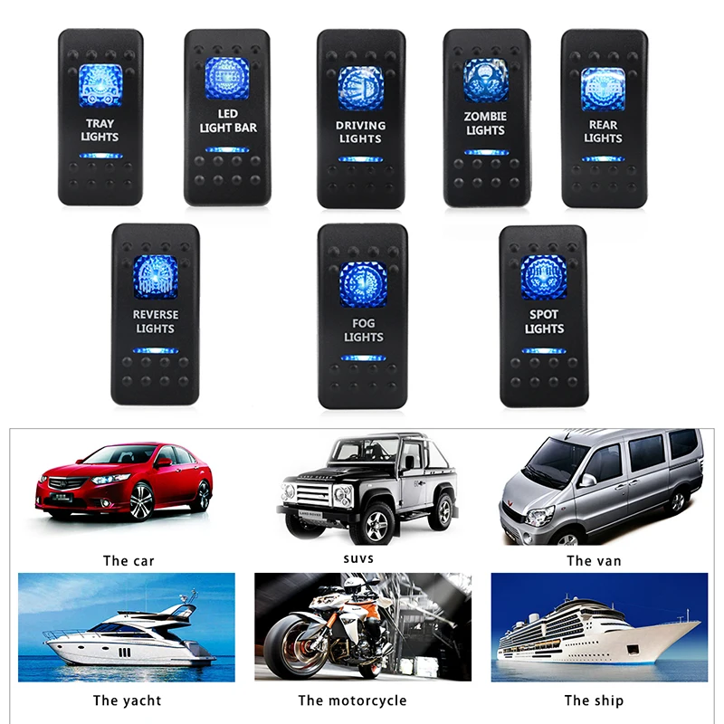 ADPOW светодиодный автомобильный выключатель для лодки грузовика светильник ключатель света 5 контактов водонепроницаемый бар стиль синий переключатель задсветильник хода 24 В