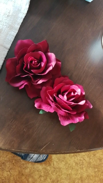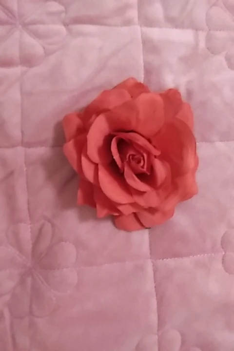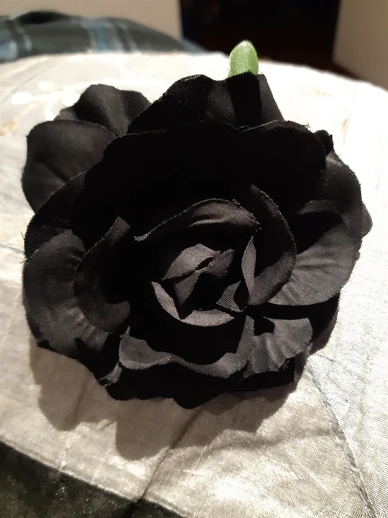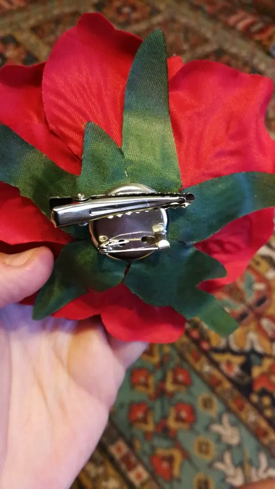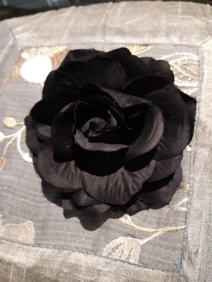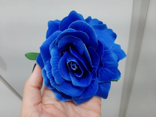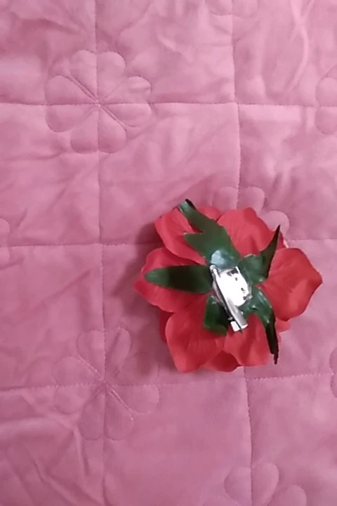 Пришло совсем не то, что я покупала. Кажется, это была просто красная или бордовая роза из крепкого материала, который держит форму (по крайней мере, на фото). Пришла же заколка из голубой вялой тряпочки, смутно напоминающей цветок. Даже не розу. Довольно мило и, если не знать, что ты на самом деле заказывала, то можно и купить. Но так впечатление было сильно испорчено. Единственное, очень хорошо держит сама заколка, не цепляет и не дерет волосы.