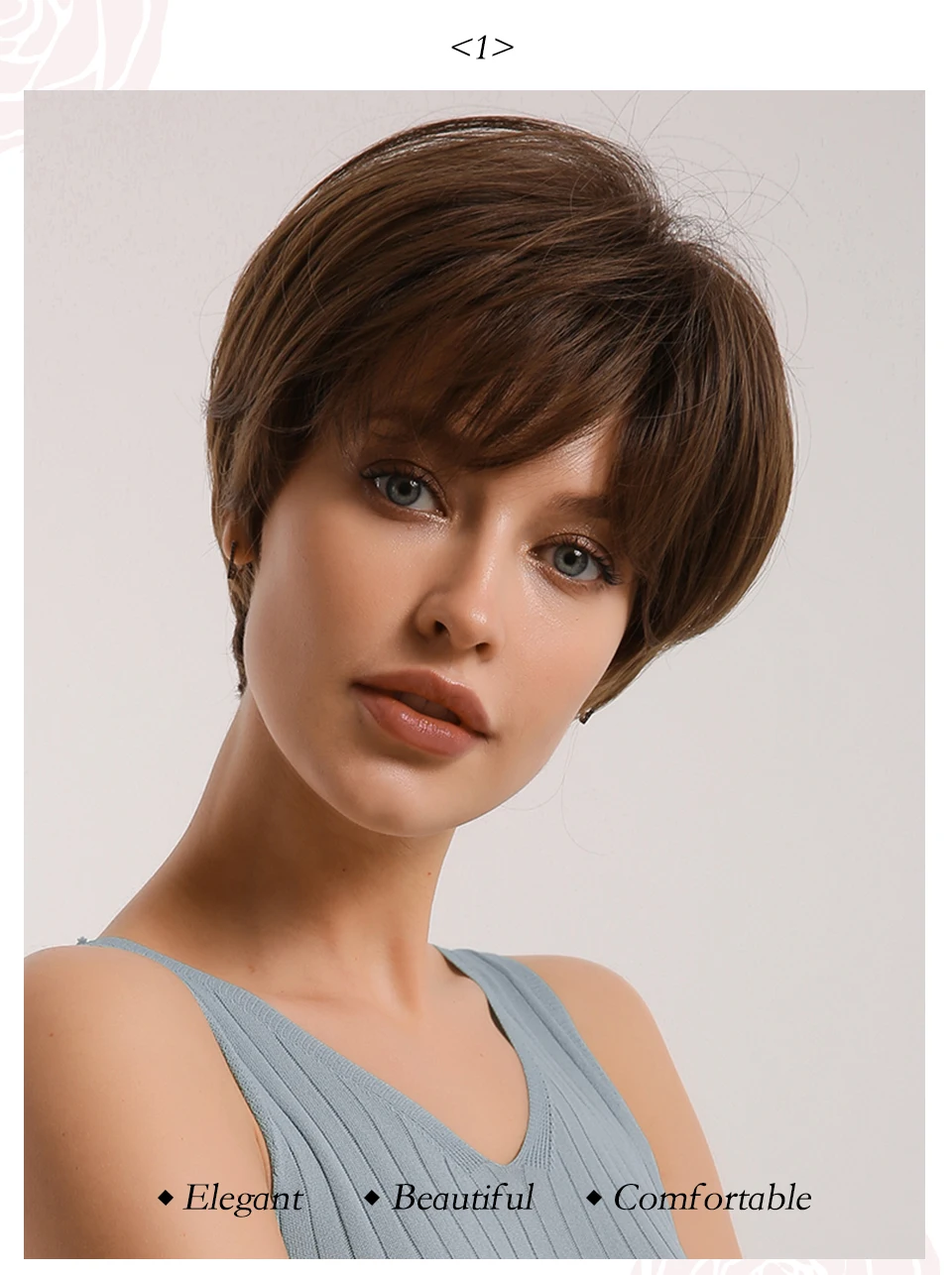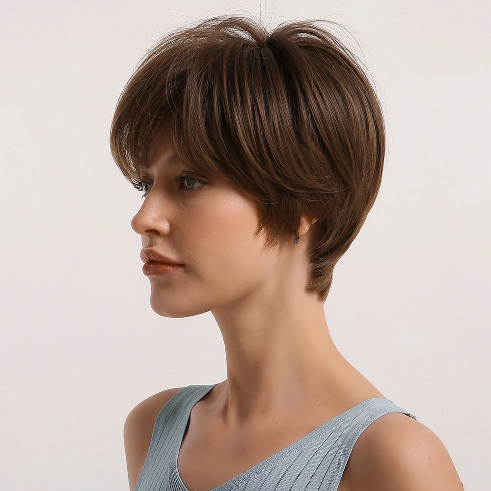 Парик с короткими прямыми волосами блонд, единорог, многослойные коричневые синтетические волосы с боковой челкой, Термостойкое искусственное волокно