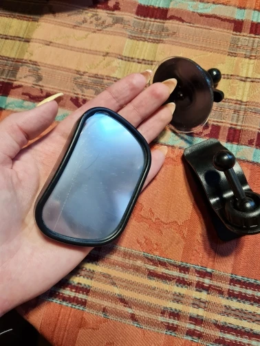 Норм зеркало, уменьшение у него конечно сильное, но салон видно весь. Присоска - у неё угол наклона сильно маленький, вывести угол так, что бы не смотрело вниз не смог, и не держит вообще, поставил на прищепку, встало хорошо.