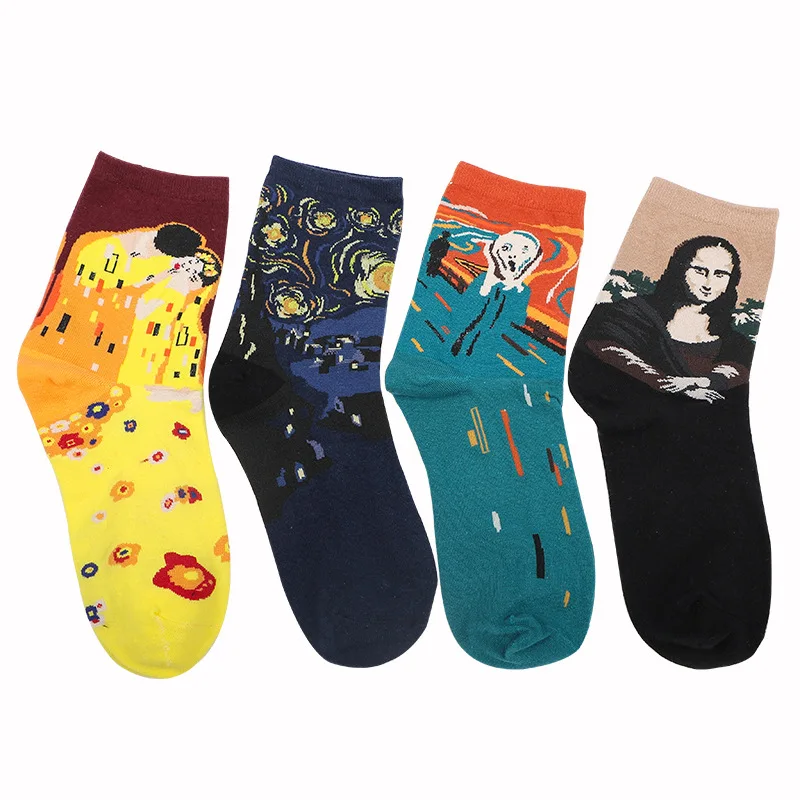 EIOISAPRA1 пара модных мягких носков высокого качества для мужчин и женщин с креативным принтом Ван Гога Мона Лиза, унисекс