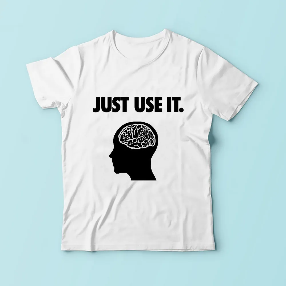 Забавная Мужская футболка с надписью Just use it your brain, Новинка лета 2018, белая Повседневная креативная крутая Мужская футболка без клея