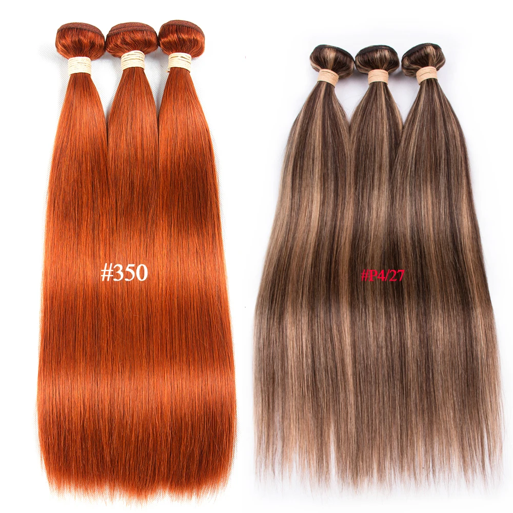 Пряпряди прямых бразильских натуральных волос, окрашенные блонд, #350, оранжевые, P427, 613