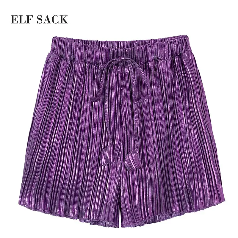 Женские кружевные шорты ELFSACK, белые винтажные Мини-шорты с широкими штанинами, металлические цвета, лето 2018