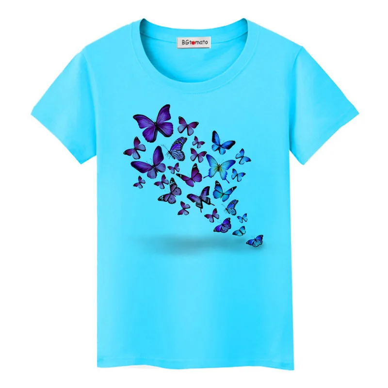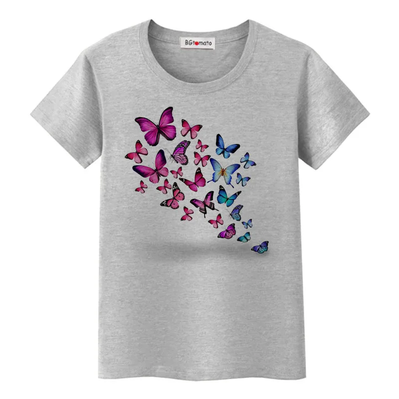 BGtomato новая стильная футболка с бабочкой, Летние красивые рубашки, красочные топы, новые женские футболки, Лидер продаж