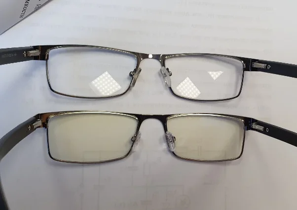 хорошие очки стандартного размера. Линзы пластик. Есть покрытие, уменьшающее поток синего от дисплея компьютера