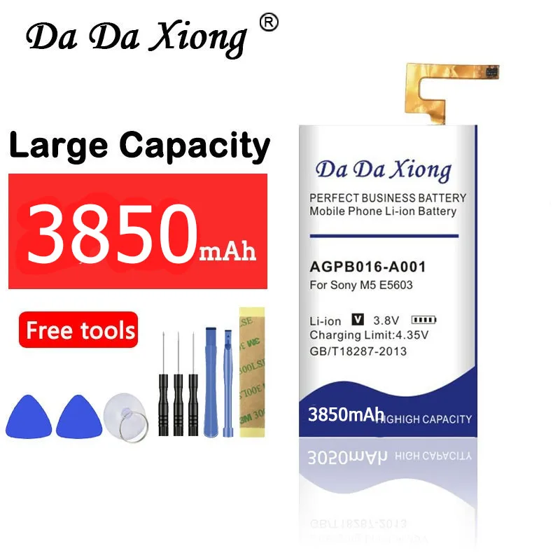 100% оригинальный новый и высококачественный аккумулятор Da Xiong. Емкость:3850 мАч Напряжение: 3,8 в Тип: литий-ионный Используется дляАккумулятор Sony Xperia M5 M 5 E5603 E5606 E5653 E5633 E5643 E5663 E5603 E5606 Безопасность и окружающая среда: функции двойной защиты. Двойная электрическая плата IC и PCB защищает от разряда заряда и короткого замыкания. Наша батарея такого же размера, как и оригинальная. Двухлетняя гарантияПосылка входит: