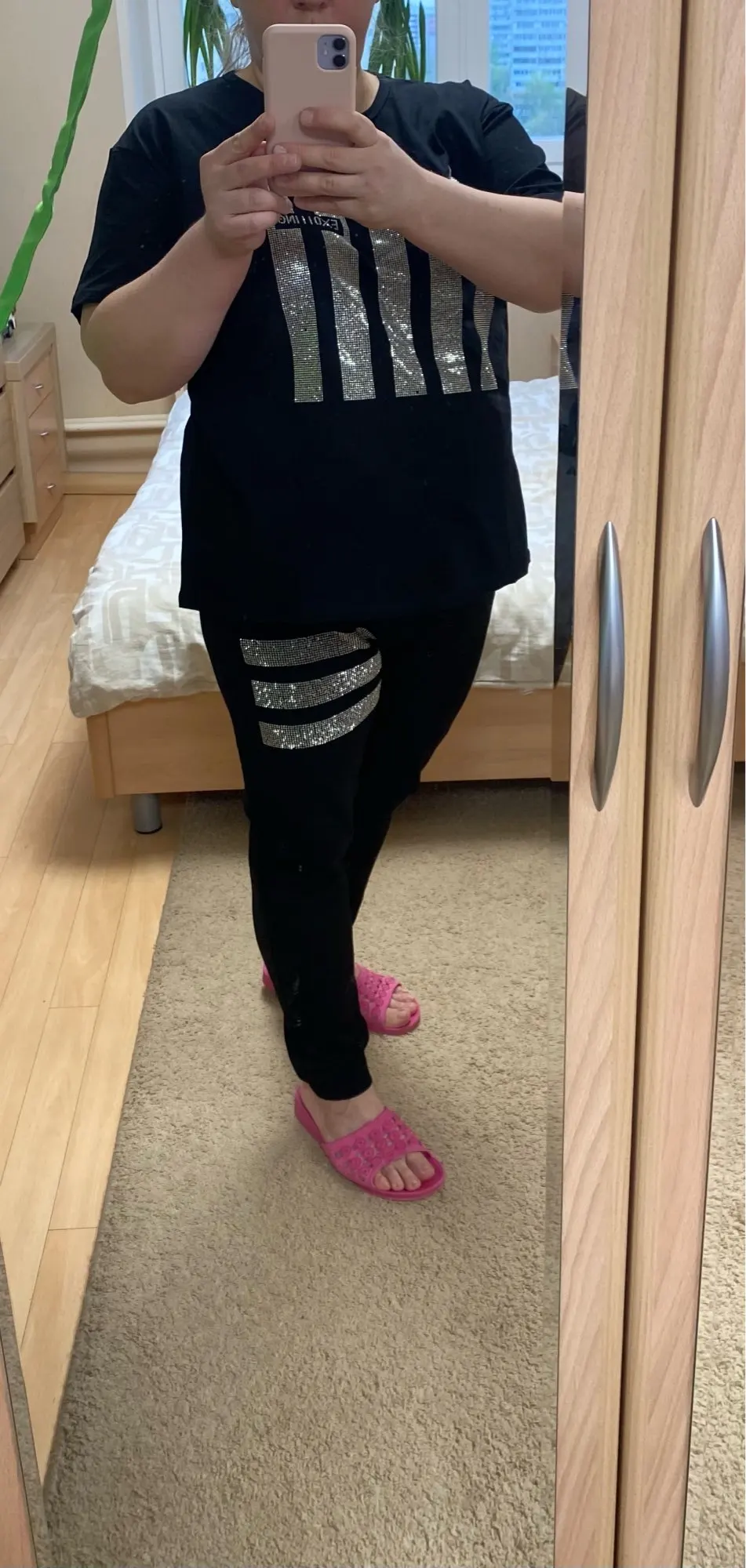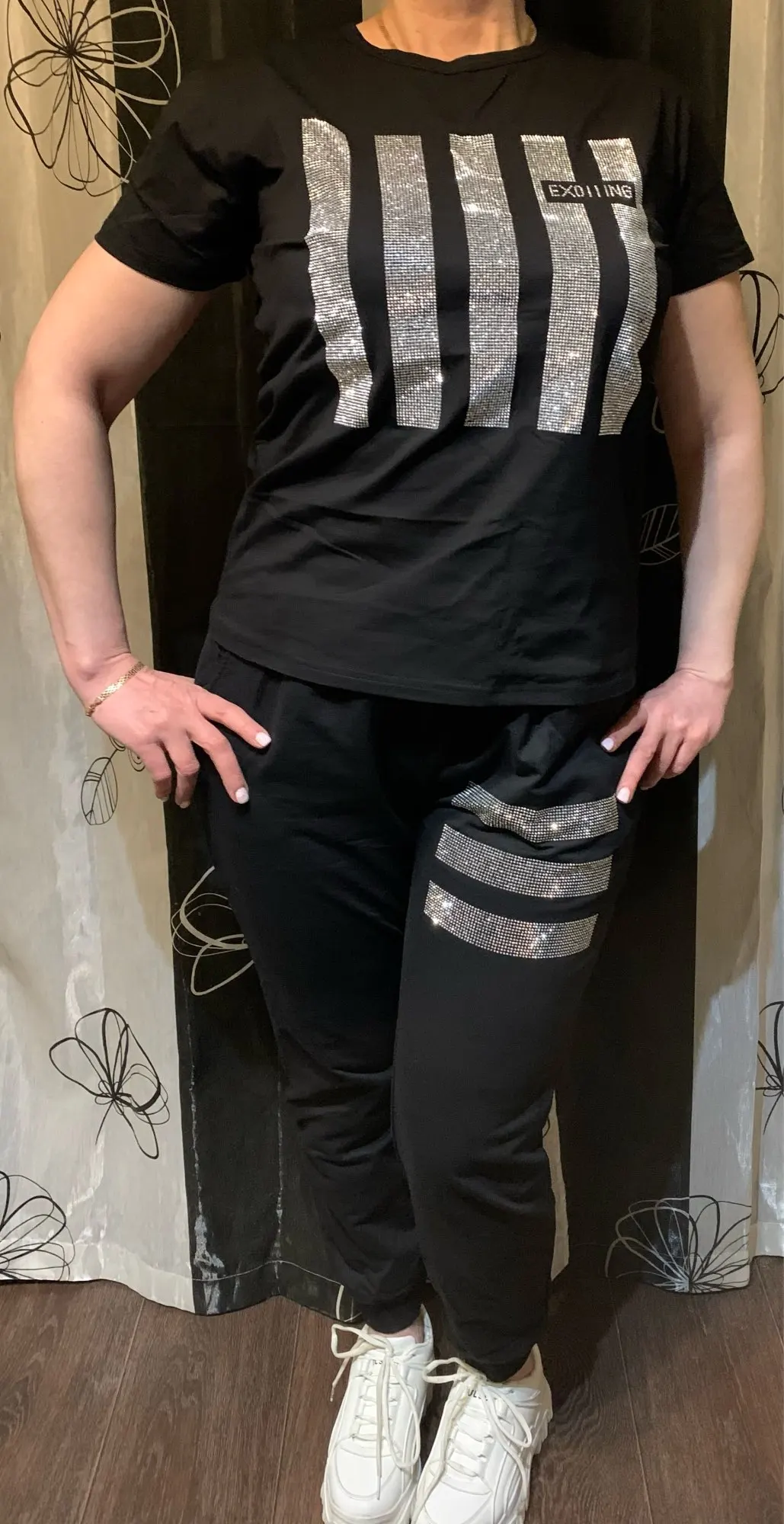Футболка со штанами мне очень понравились ( получился комплект с полосками на футболке и на штанах) Все подошло по размеру ,на 54р. я заказала футболку р-,р 3Xl, а штанцы 5Xl. Все ОК!!!!!Спасибо !