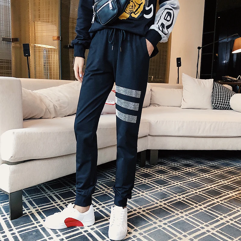 Женские брюки Motion, новая весна-осень 2021, корейская версия, свободные шаровары с горячим сверлением, повседневные женские брюки с эластичной талией