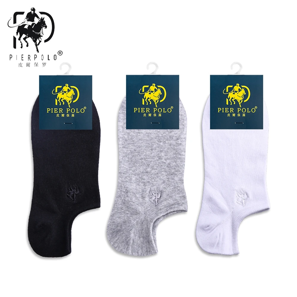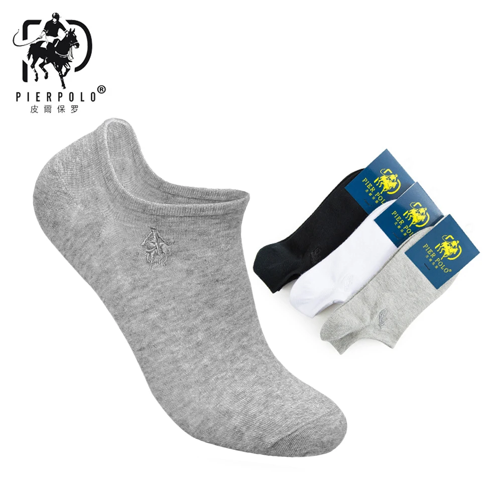 3 пары брендовых носков PIER POLO, летние невидимые мужские носки до щиколотки, черные, белые, серые повседневные хлопковые носки-тапочки, мужские короткие носки