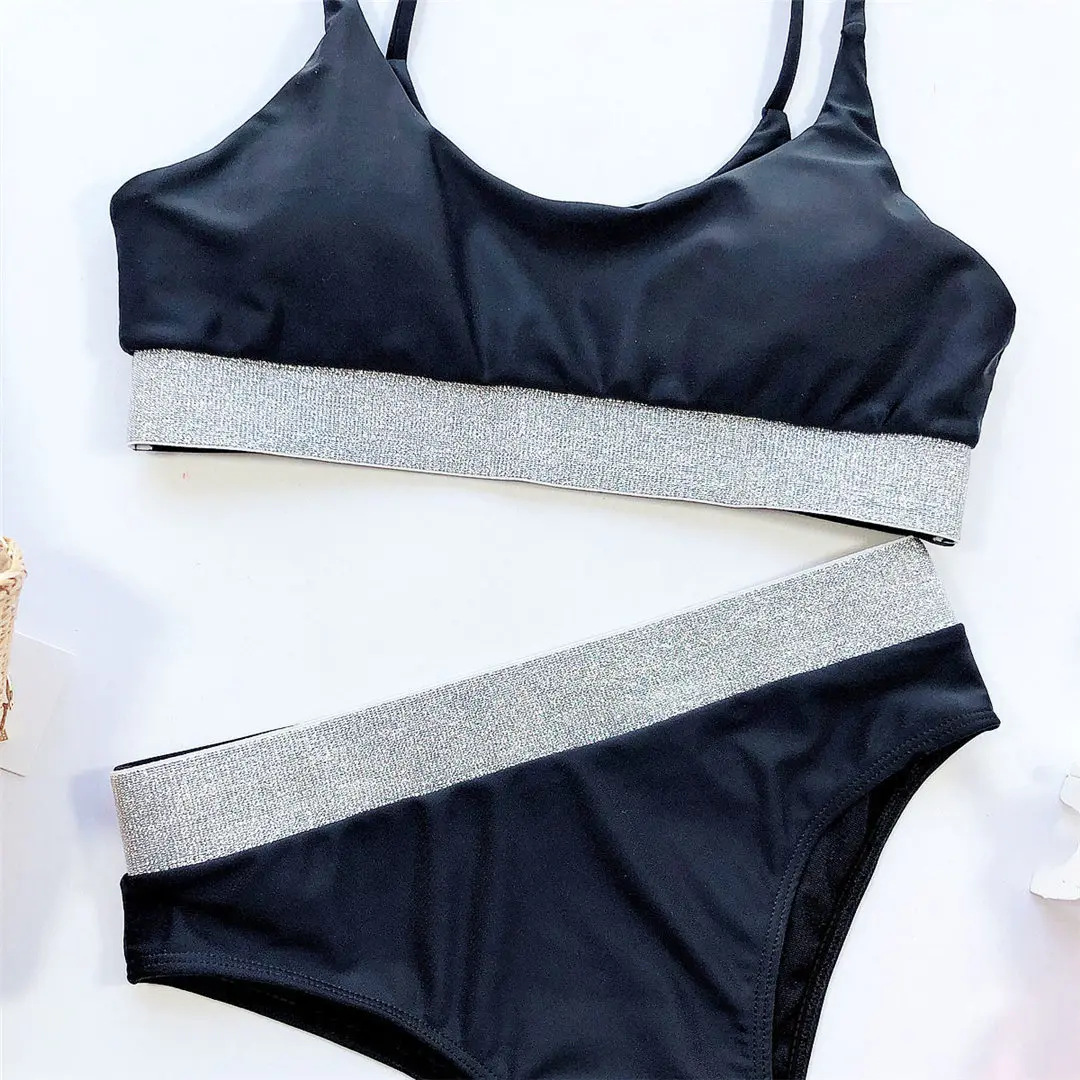 Сексуальный блестящий женский купальный костюм с высокой талией бикини 2021 Женская одежда для плавания комплект из двух частей бикини купальный костюм для женщин V746