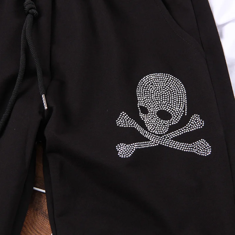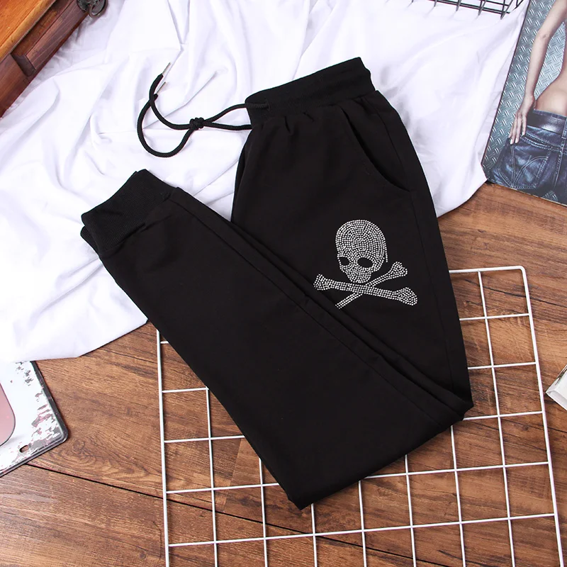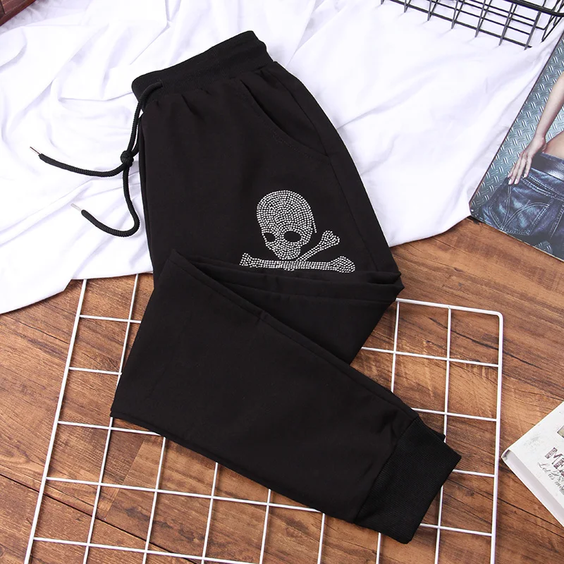 Новинка 2022 года, весенне-осенние штаны-шаровары, трендовые женские свободные брюки с рисунком черепа, модные повседневные брюки с бриллиантами, женские спортивные штаны