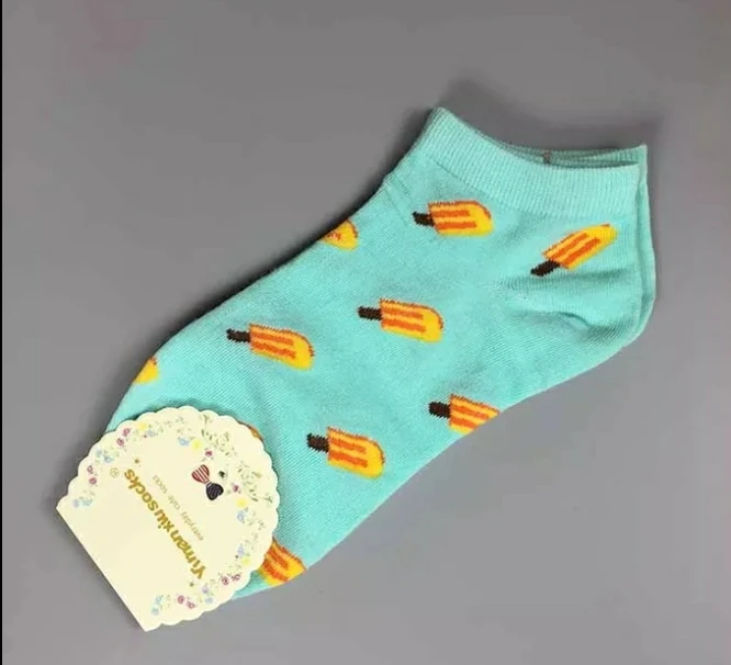 Носки женские короткие с принтом фруктов, тонкие хлопковые с художественным принтом, милые смешные трикотажные, летние