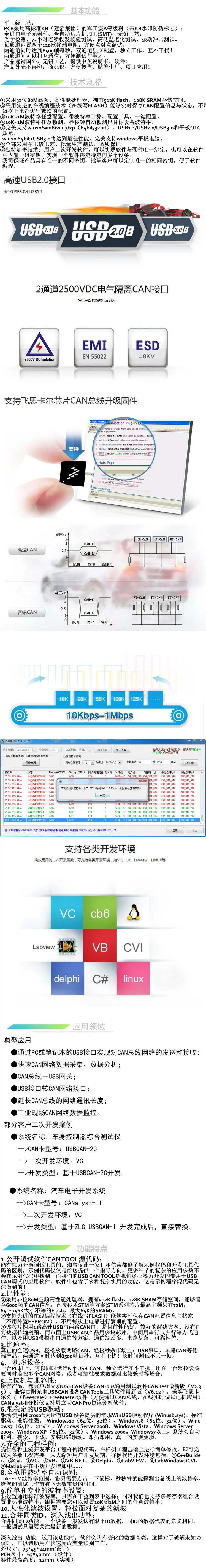 CAN-анализатор шины CANOpenJ1939 USBCAN-2A USB для CAN Dual Journey совместимый с ZLG