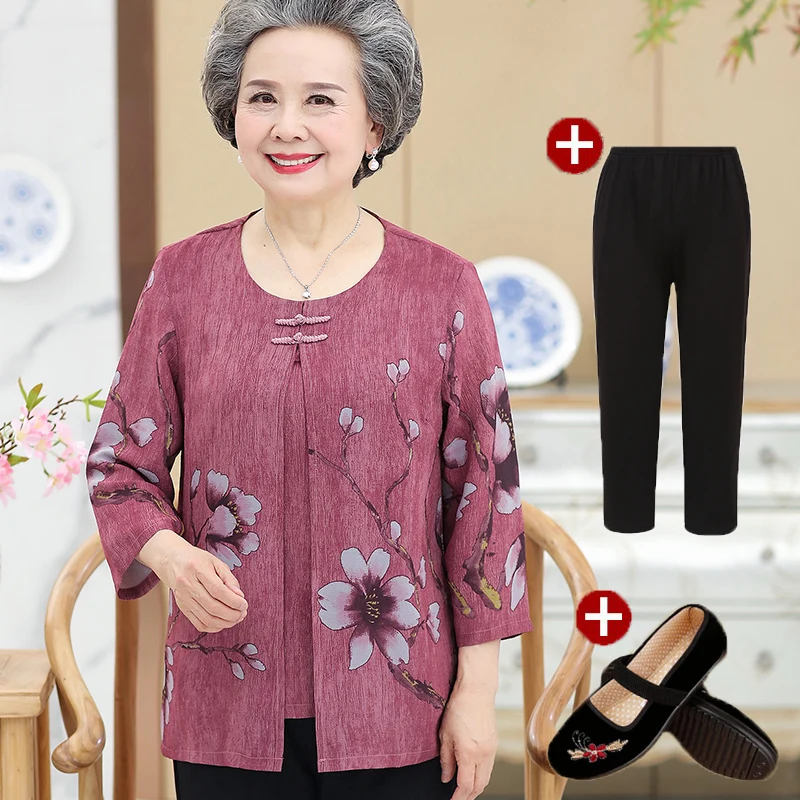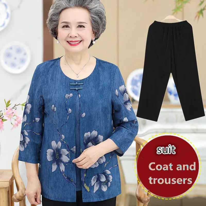 Женский костюм из 2 предметов с принтом, костюм для женщин среднего возраста, топ и брюки, большие размеры, XL-4XL, лето 2018