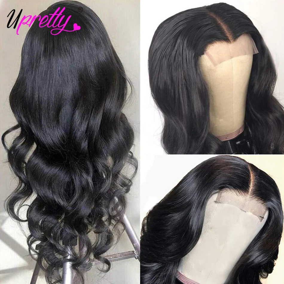 Upretty объемная волна Синтетические волосы на кружеве парик предварительно вырезанные Кружева Закрытие парик 150 180 Плотность 13x6 глубокий Часть бразильские Синтетические волосы на кружеве парик из человеческих