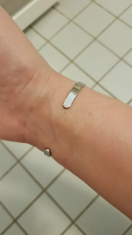 Этот браслет очень красивый! Я купил его для своей сестры, так как она всегда хотел один, но я знаю, что они обычно ржавеют, поэтому я пришел на aliexpress, чтобы попробовать один. Она дувает с этим, и он не ржавеет. Он был немного велик для нее, но мы сумели выдавить его немного, чтобы соответствовать лучше. Продавец отправил товар, и я получил его в течение недели! Определенно рекомендую!