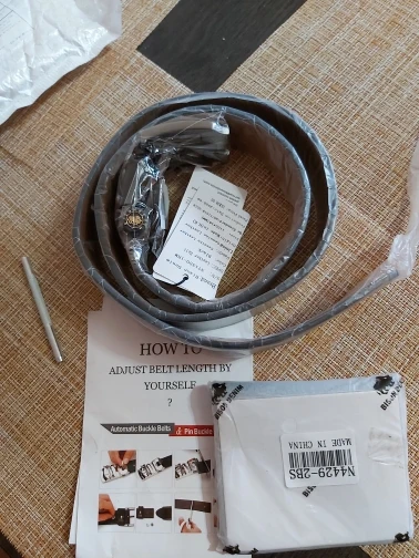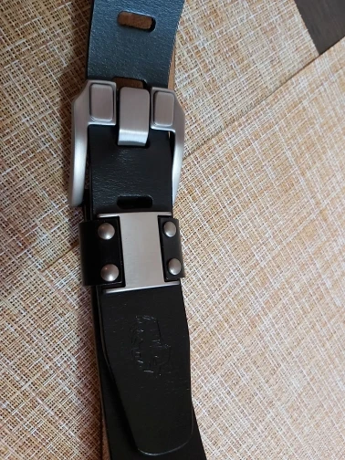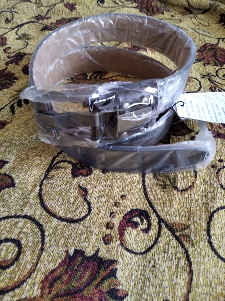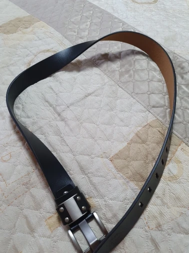 Ремень отличный! Чуть жестковатый, но так даже лучше, форму держит. Цвет как на фото, с размером тоже угадал. Пряжка массивная, отлита (или проштампована) качественно. Общее впечатление - не зря купил. Доставка около месяца до Якутии. Рекомендую!