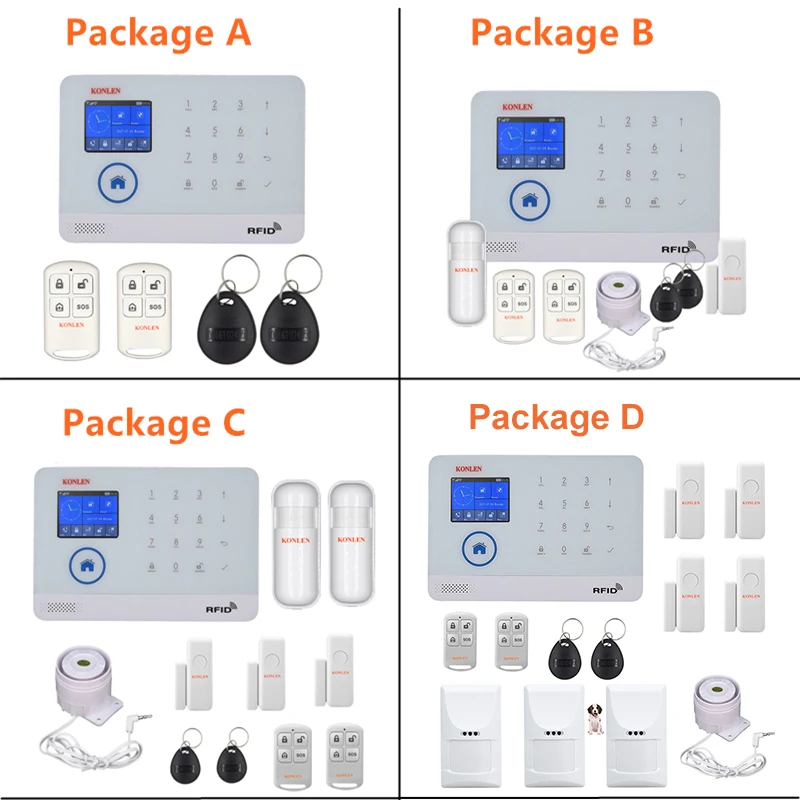 Вышивка крестом пакет Содержание1 WIFI GSM сигнализация панель2 пульта дистанционного управления2 RFID карты1 адаптер питанияКомплектация B содержимое1 WIFI GSM сигнализация панель2 пульта дистанционного управления1 мини беспроводные PIR детекторы1 мини Беспроводные двери/окна магнитные датчики2 RFID карты1 адаптер питания1 проводной сигнал тревоги1 Инструкция на английском языкеУпаковка C содержимое1 WIFI GSM сигнализация панель2 пульта дистанционного управления2 мини беспроводной PIR детектора3 мини Беспроводные двери/окна магнитные датчики2 RFID карты1 адаптер питания1 проводной сигнал тревоги1 Инструкция на английском языкеПакет D содержимое1 WIFI GSM сигнализация панель2 пульта дистанционного управления3 беспроводных pet иммунные PIR детекторы движения4 мини Беспроводные двери/окна магнитные датчики2 RFID карты1 адаптер питания1 проводной сигнал тревоги1 Инструкция на английском языке