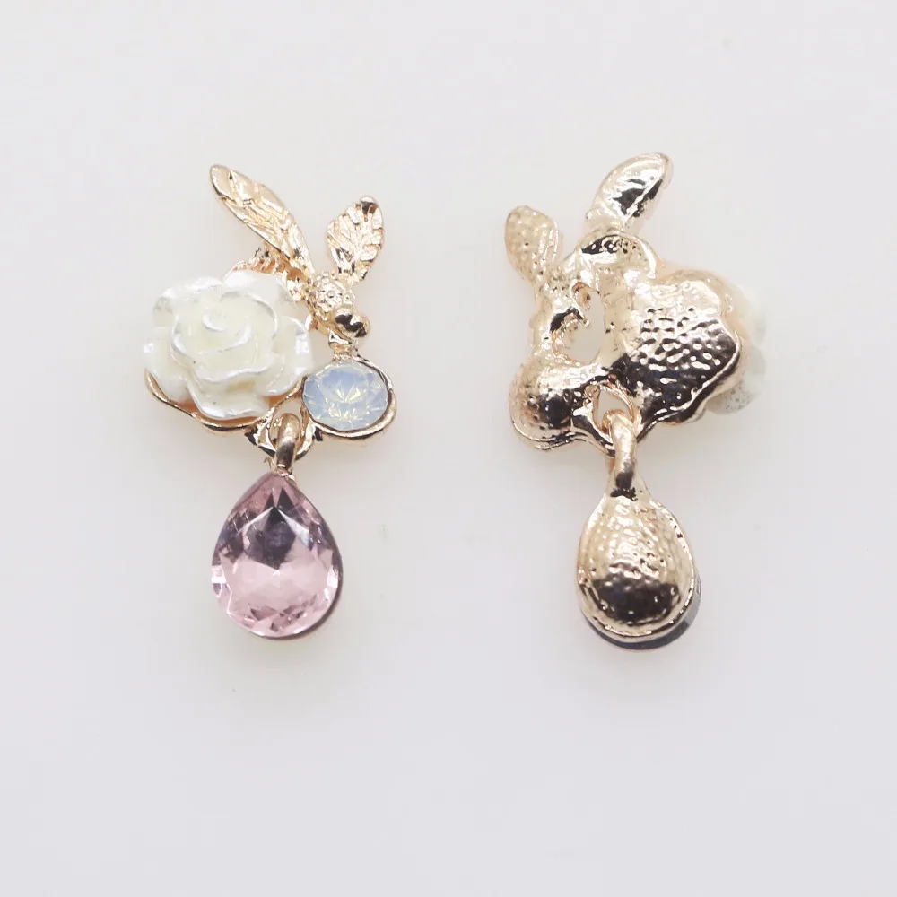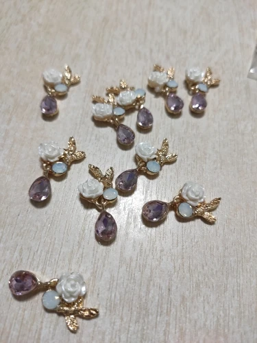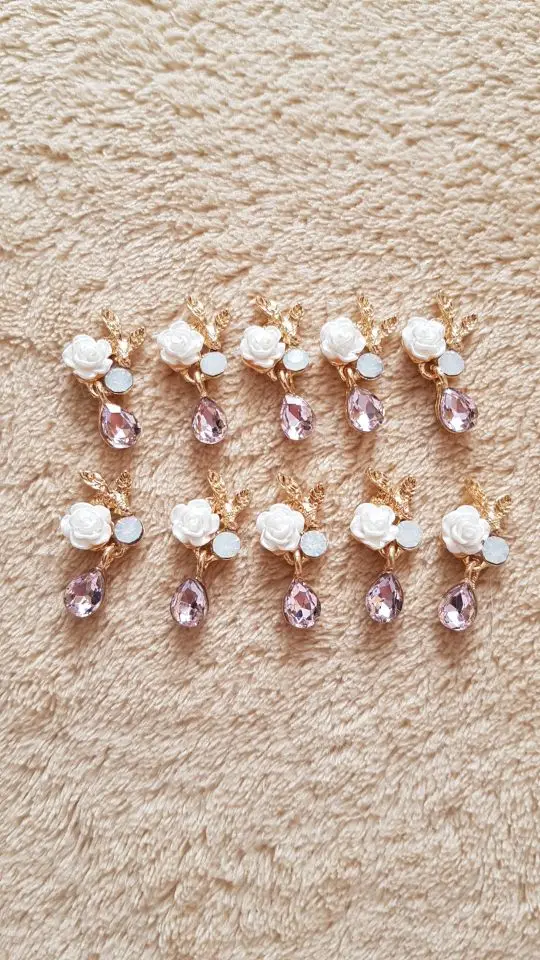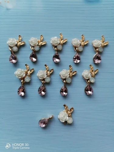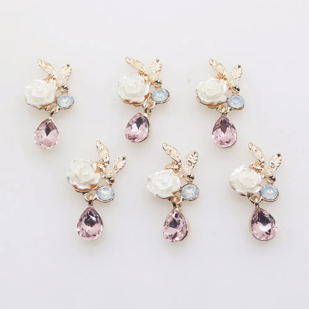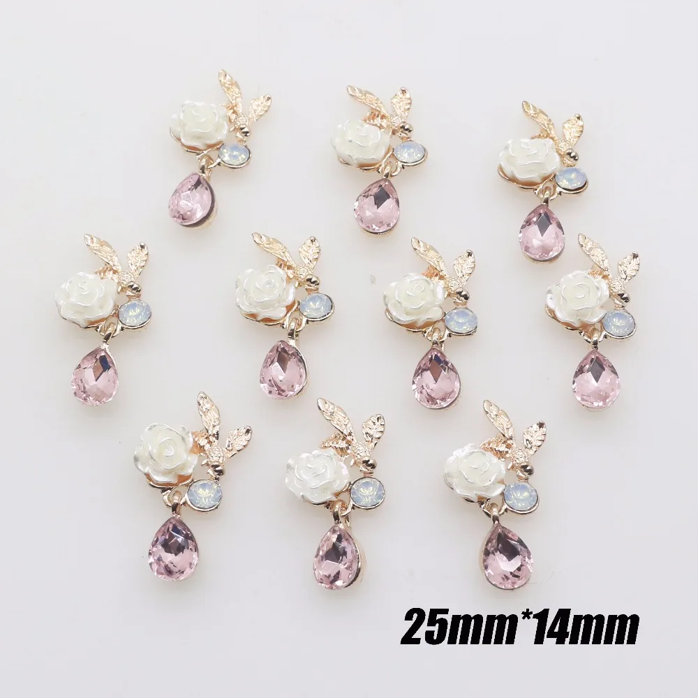 Металлический кулон, 10 шт., 25*14 мм, розовый пуговица с прозрачными стразами, цветок декоративная брошь, пуговица с кристаллами для шитья одежды