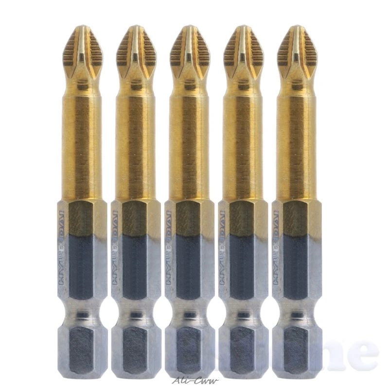 Биты для электрической отвертки PH2 с титановым покрытием, 14 дюйма, с шестигранным хвостовиком, 50 мм, 5 шт.