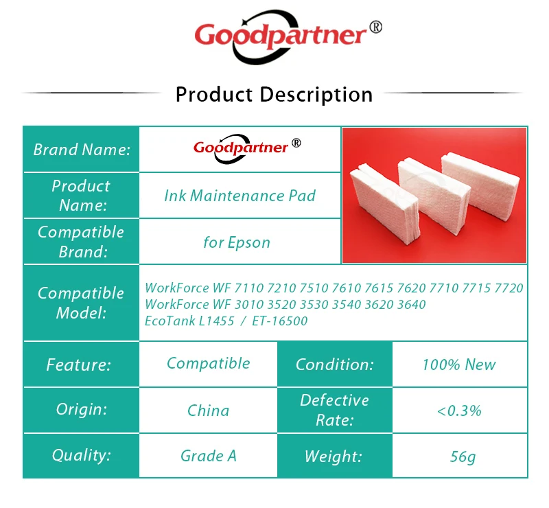 1X T6711 губка для резервуара для отходов чернил для EPSON WF 7110 7210 7510 7610 7615 7620 7710 7715 7720 3010 3520 3530 3540 3620 3640 7725