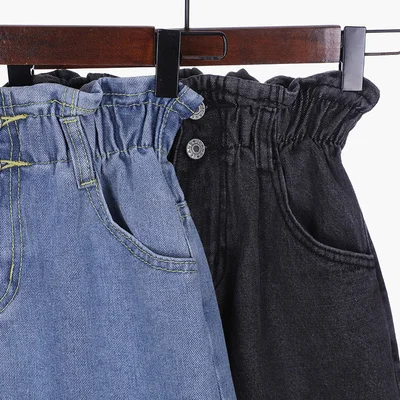 Размера плюс 5XL 2019 летние женские джинсовые шорты с высокой талией и карманами синие джинсы с эластичным поясом свободные брюки с отложным воротником B85104X