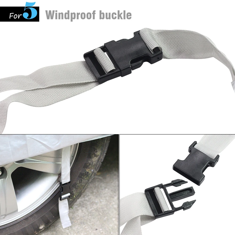 5. Ветрозащитная конструкция, легко надевается и снимается, полностью Эластичный подол, ремни и пряжка внизу, чтобы защитить ваш автомобильный чехол от сильного ветра.