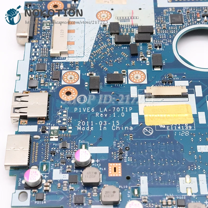 NOKOTION для Acer aspire one AO722 722 материнская плата для ноутбука MBSFT02003 P1VE6 LA-7071P DDR3 с процессором на борту