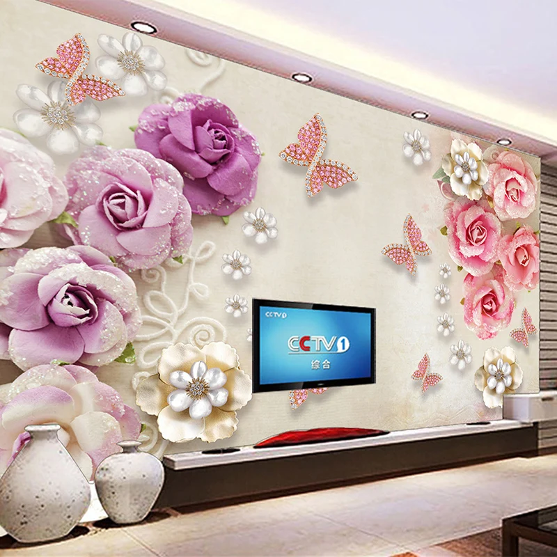 Пользовательская настенная ткань современный 3D стерео бабочка цветок бриллиант ювелирные изделия фотообои для гостиной ТВ домашний декор Фреска