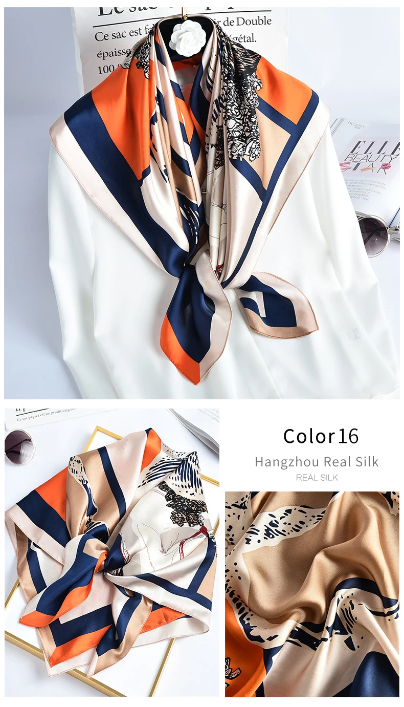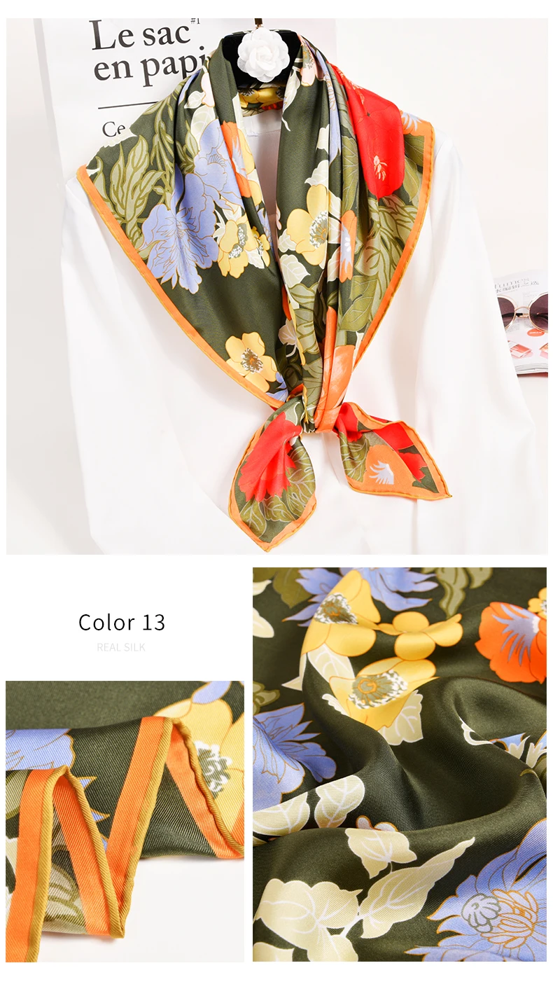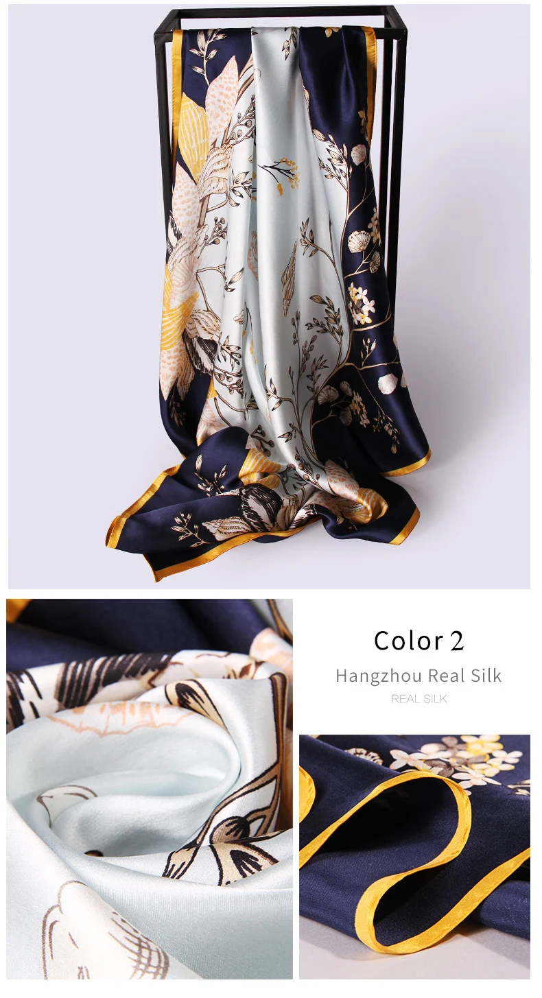 Шарф квадратный Женский, 100% натуральный шелк, бандана, цветочный шёлк, платок с принтом, пляжный ожерелье для женщин, 88x88 см, 2021 чистый шелк