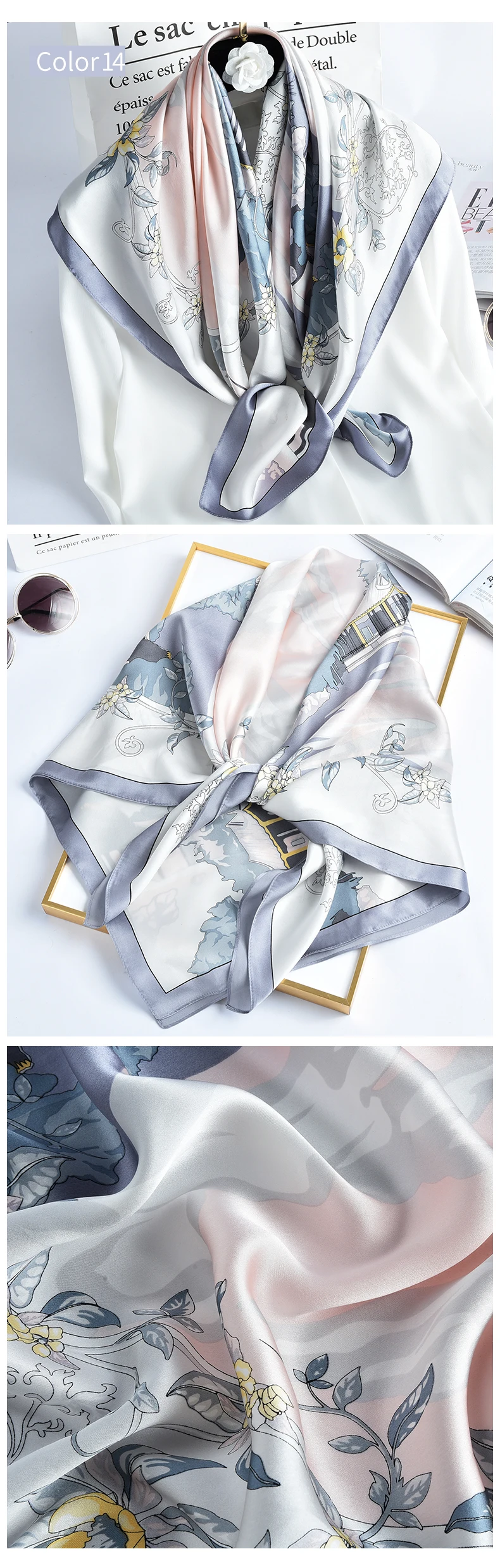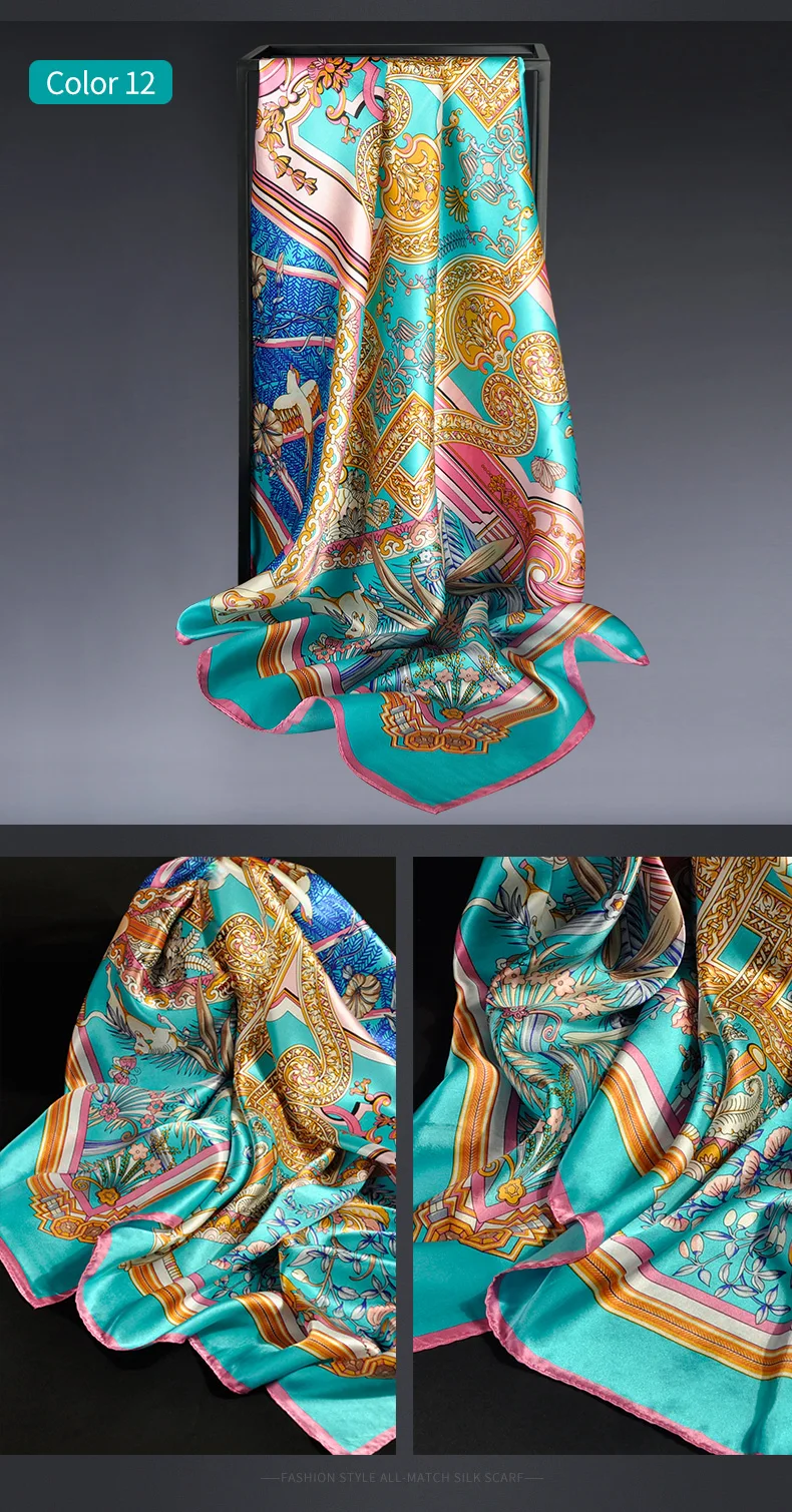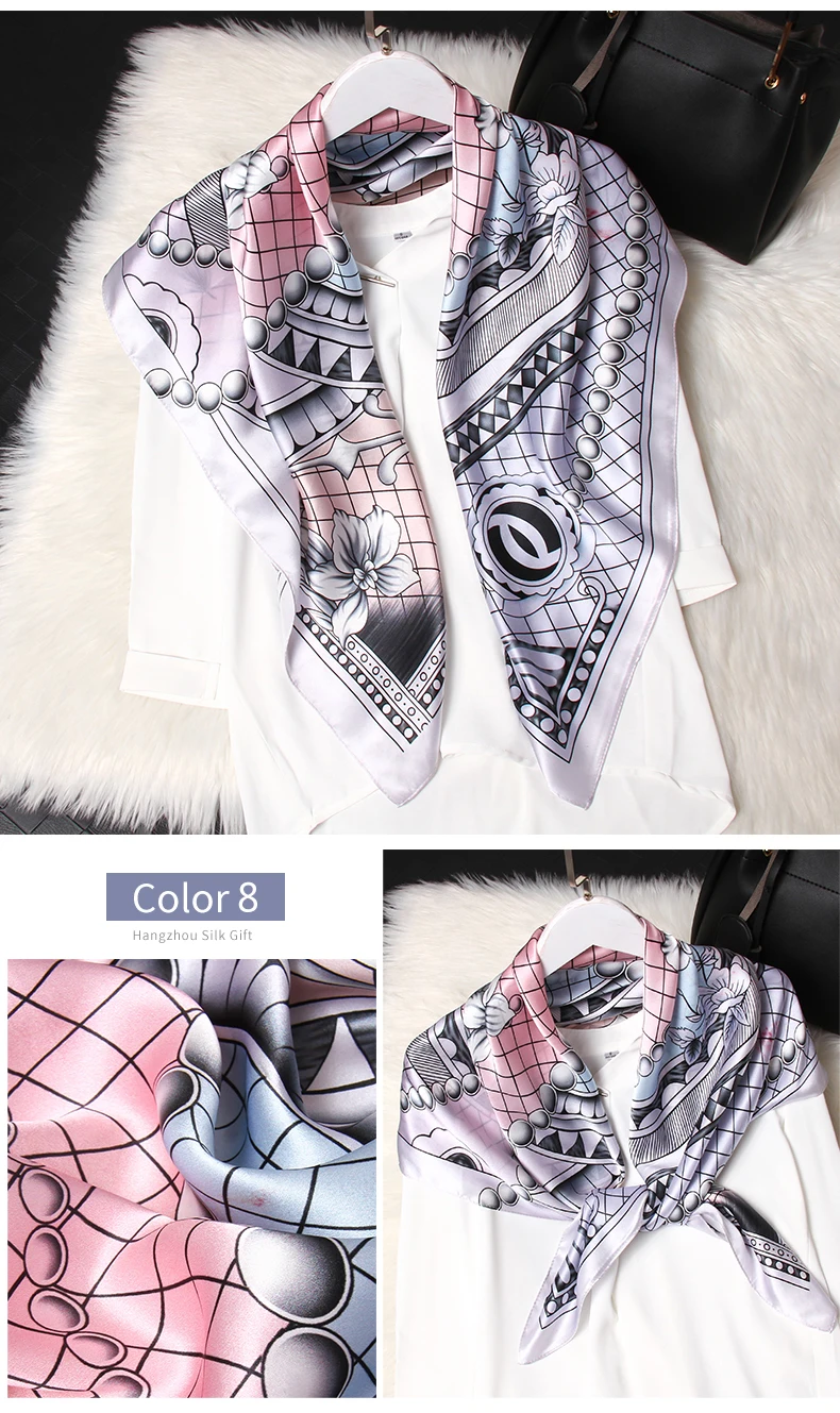 Шарф квадратный Женский, 100% натуральный шелк, бандана, цветочный шёлк, платок с принтом, пляжный ожерелье для женщин, 88x88 см, 2021 чистый шелк