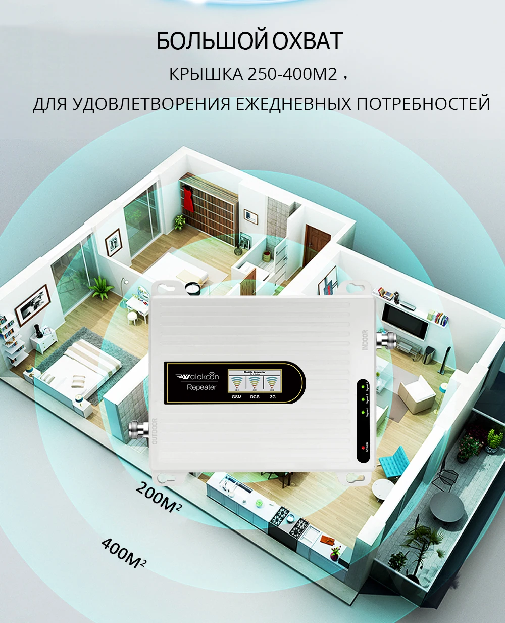 Все соответствует описанию. Посылка пришла быстро. Репитер - корпус металл, внешняя антенна увеличенный размер и усиление (есть на фото). В городе проверять бестолку - инет и так быстрый, связь - Yota, интернет тариф безлимитный. Проверил на даче во Владимирской области. До вышки 3,5 км. Дача за лесом и в низине. Связь - 2 палочки на телефоне и интернет - Е, чтобы позвонить, приходилось выходить на улицу, интернета нет. Внешнюю антенну положил просто на кусты сирени в 1,5 метрах от земли (зима, холодно лезть куда-то и крепить не охота, все дела до весны). Внутреннюю антенну и репитер в домике. Включаю и о чудо - сигнал для связи все полоски на телефоне и телефон показывает интернет - 4g (Хотя на репитере индикация мигала - сигнал слабенький, но все работает). Спокойно полазил по сайтам, быстрое обновление страниц, позвонил из домика - связь отличная. Все что требовалось - получилось и это еще не с поднятой антенной. Продавцу спасибо.